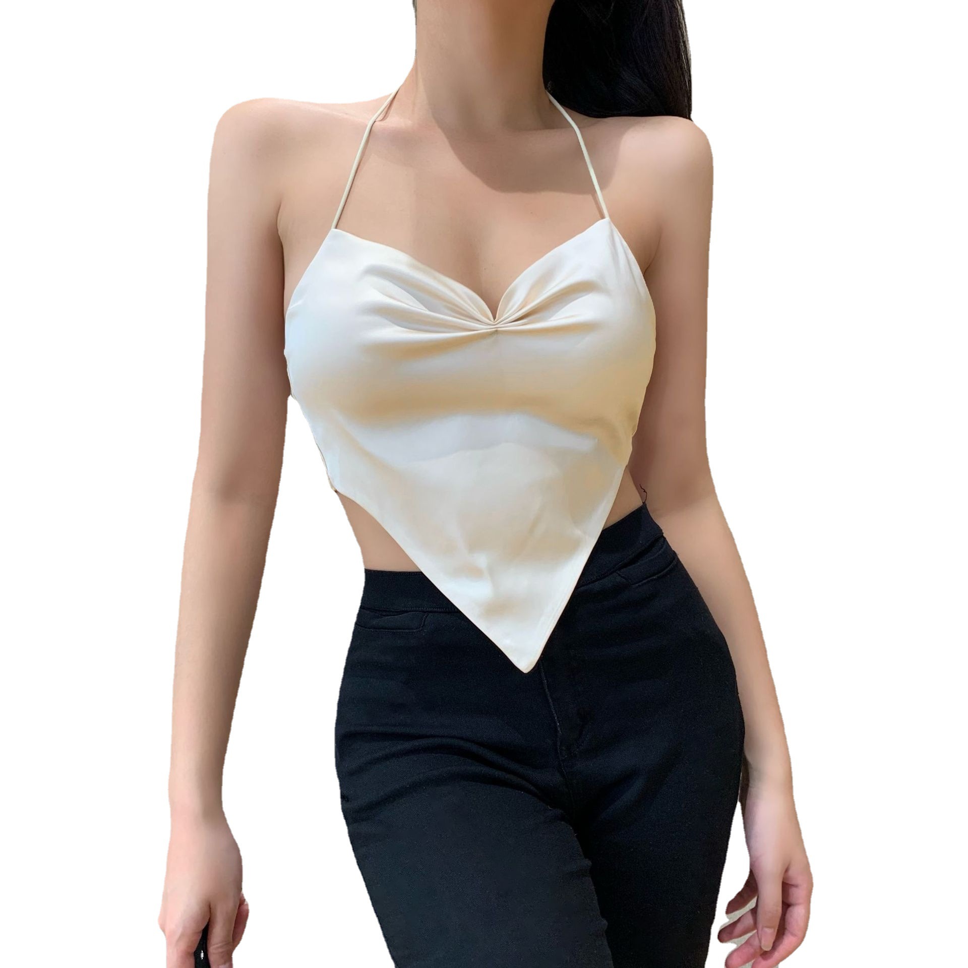 纯欲风美式复古挂脖方巾带个性感挂脖背心仿真丝上衣微胖辣妹