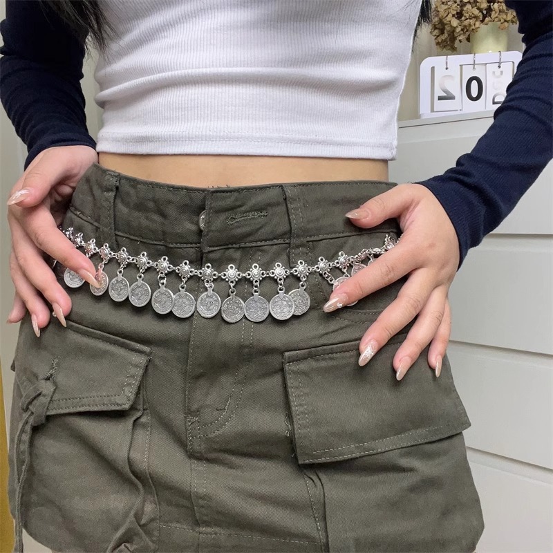 新款波西米亚长款硬币吊坠腰链女士复古民族风金属时尚腰带