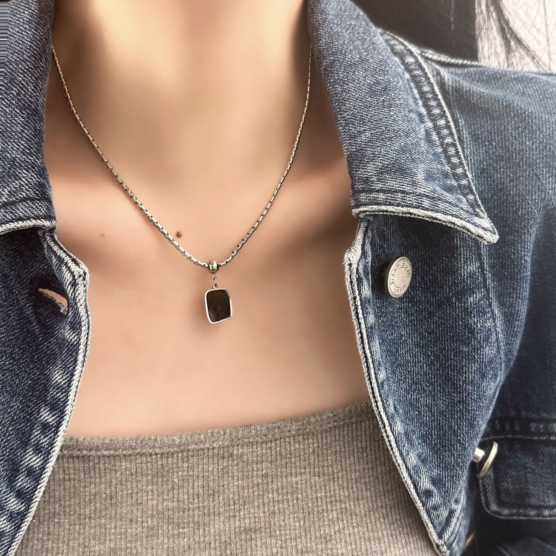 小众设计感吊牌钛钢项链女新款简约百搭毛衣链子高级配饰女