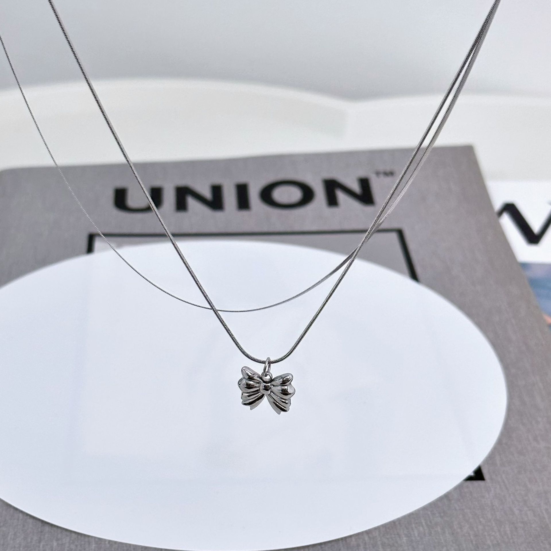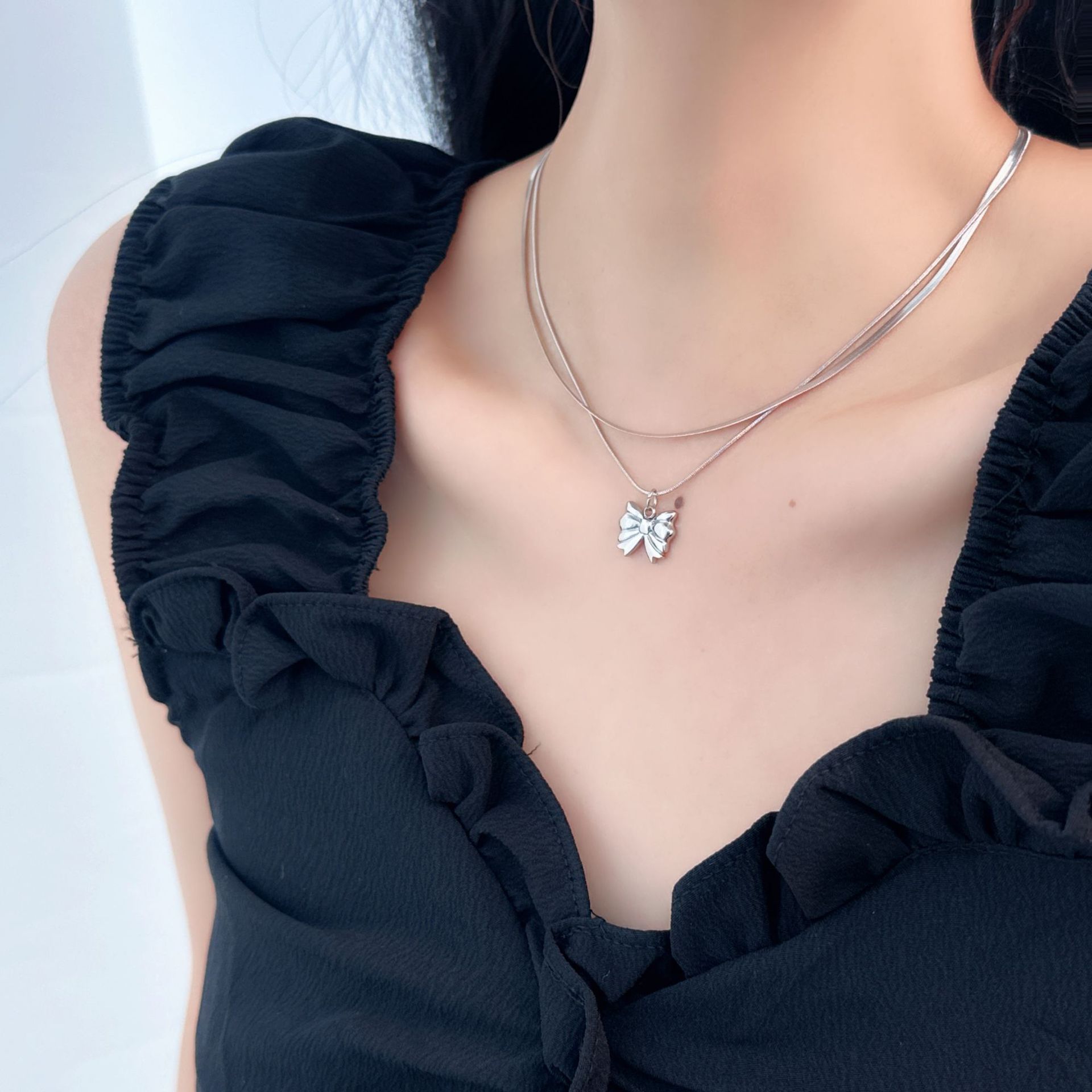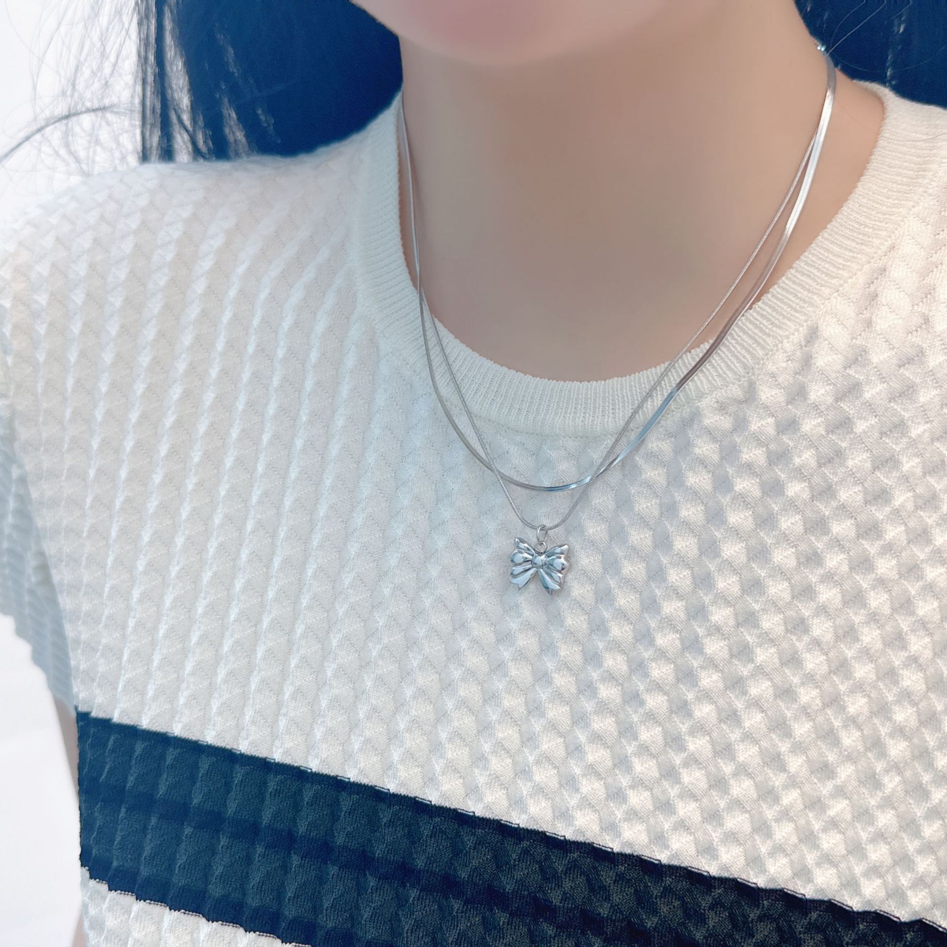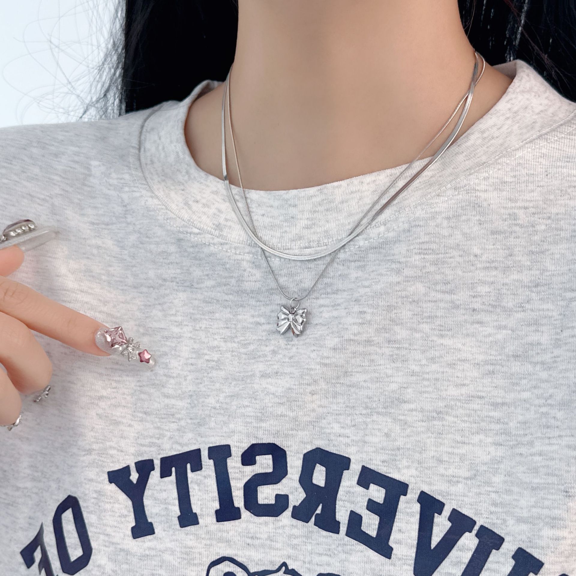 钛钢项链女蝴蝶结韩式简约风双层蛇骨锁骨链百搭街头基础款不褪色
