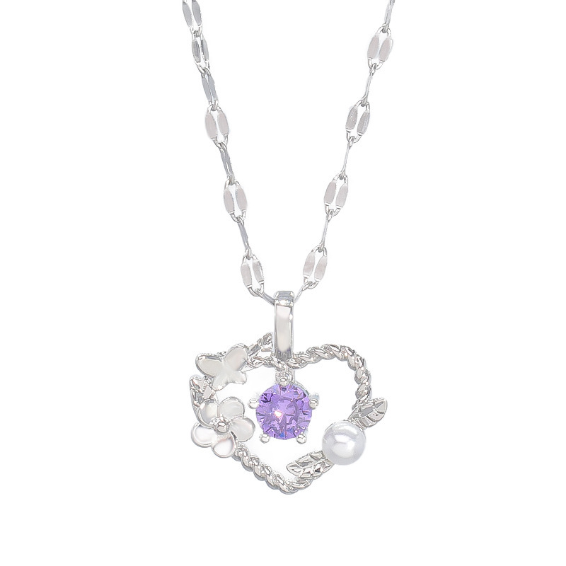 心花怒放项链女小众设计感百搭蝴蝶花朵锁骨链爱心形吊坠饰品