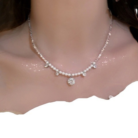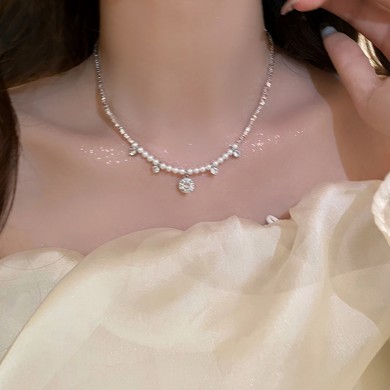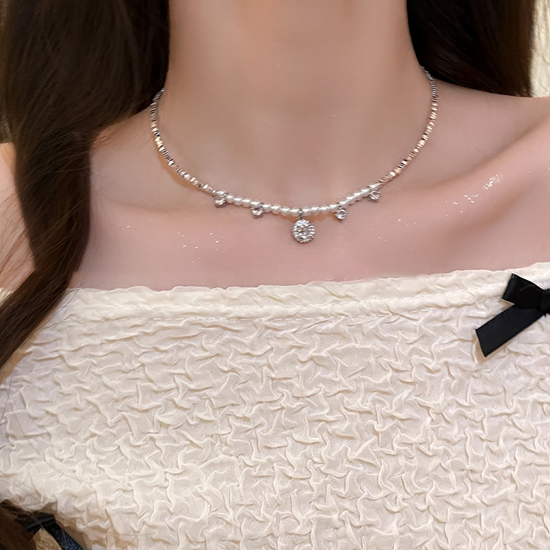法式高级感碎银锆石珍珠项链轻奢大气颈链锁骨链复古气质百搭项饰