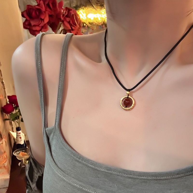 新中式红色转运珠吊坠项链女简约百搭锁骨链颈链气质百搭国风配饰