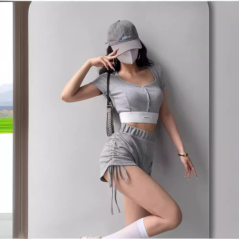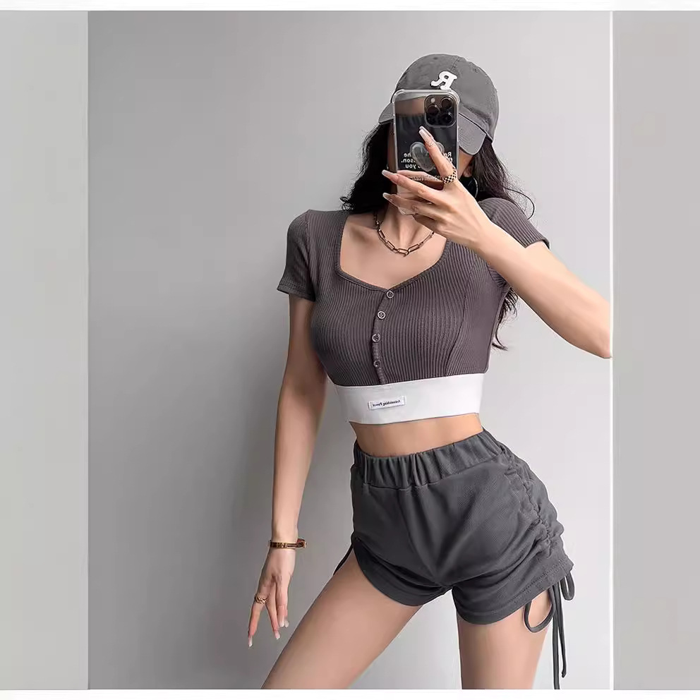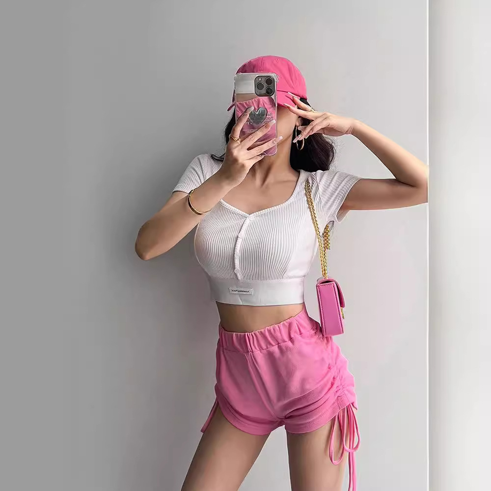 美式辣妹紧身短袖T恤女超短款带胸垫打底衫露脐修身爵士运动上衣