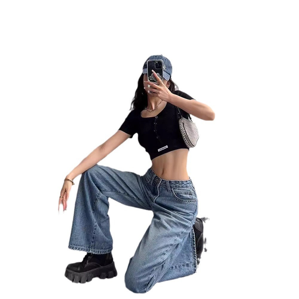 牛仔裤男痞帅高级感弯刀裤潮流显瘦宽松男裤秋季新款直筒裤子