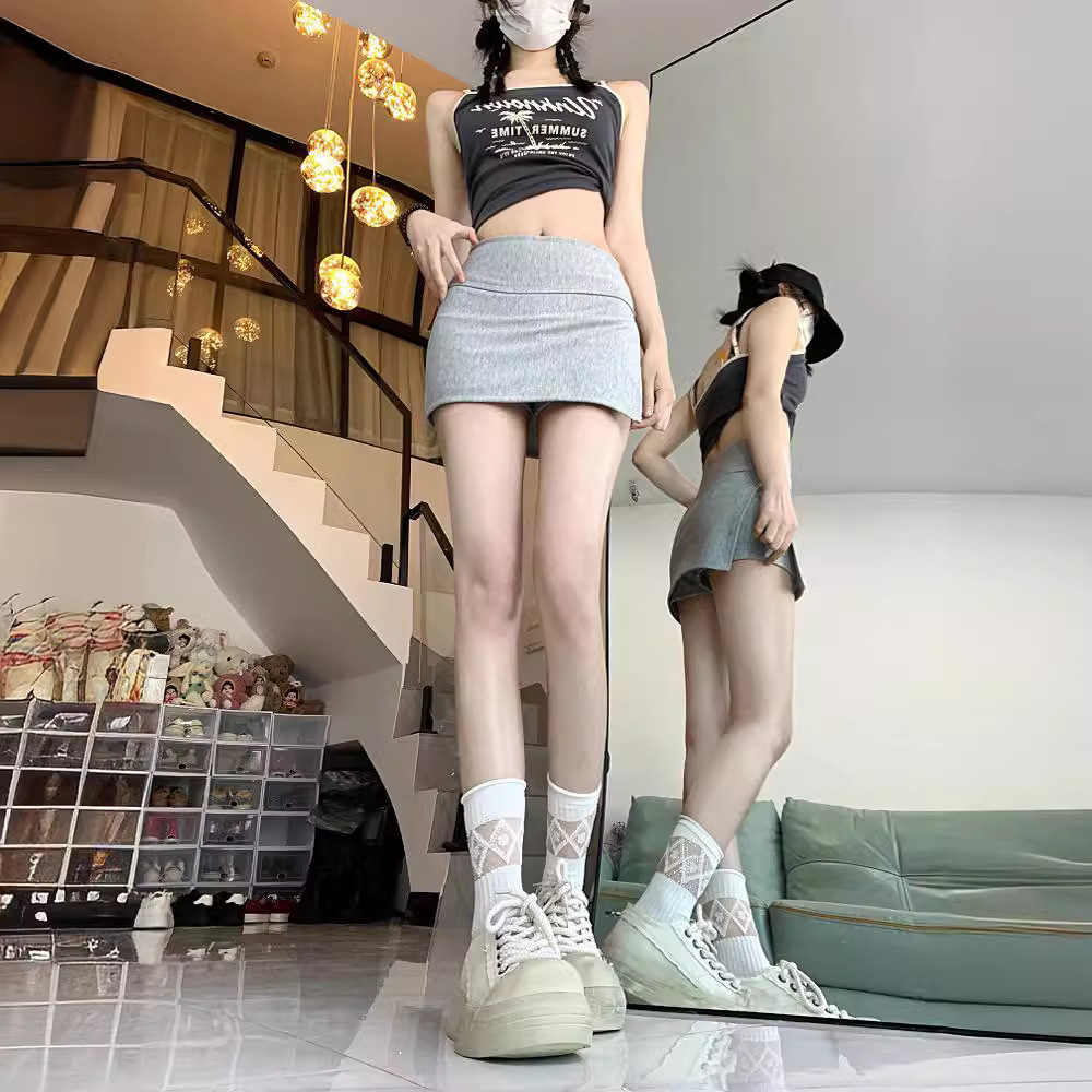 美式运动灰色半身裙裤女夏季设计感开叉包臀裙子半裙辣妹a字短裙
