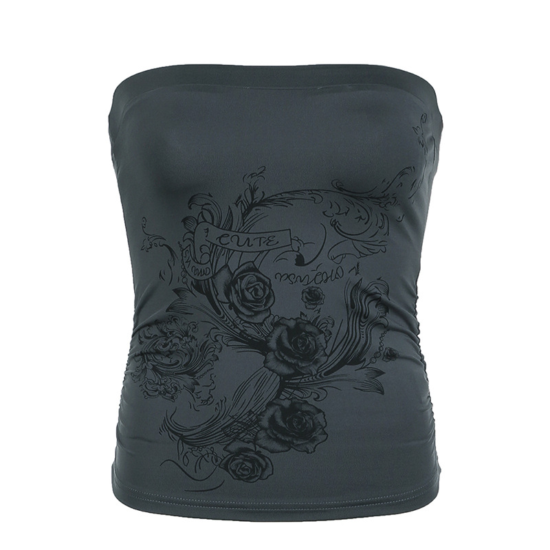 美式特色玫瑰印花基础简约抹胸薄款修身百搭纯色背心春夏新款