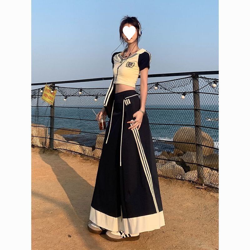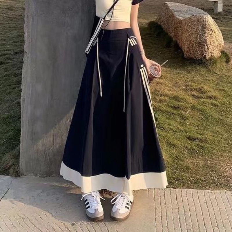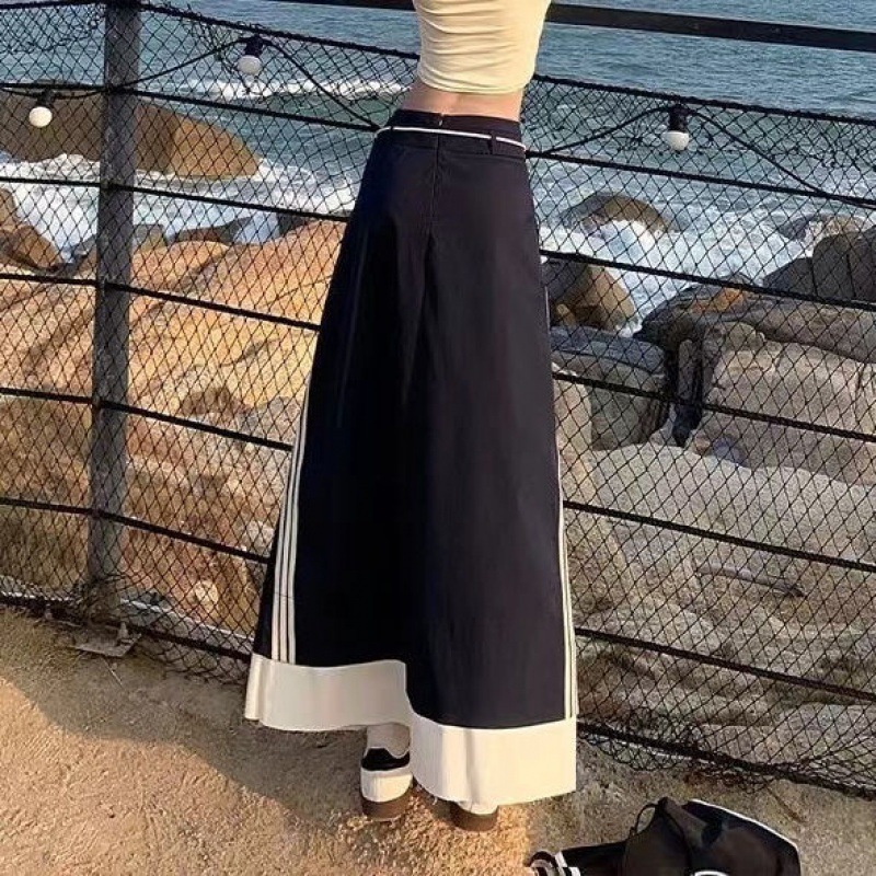 辣妹学院风不规则拼接半身裙女春季女装美式三条杠a字开叉长裙子