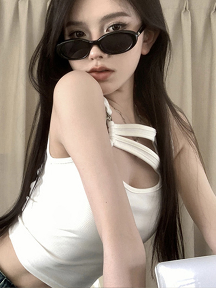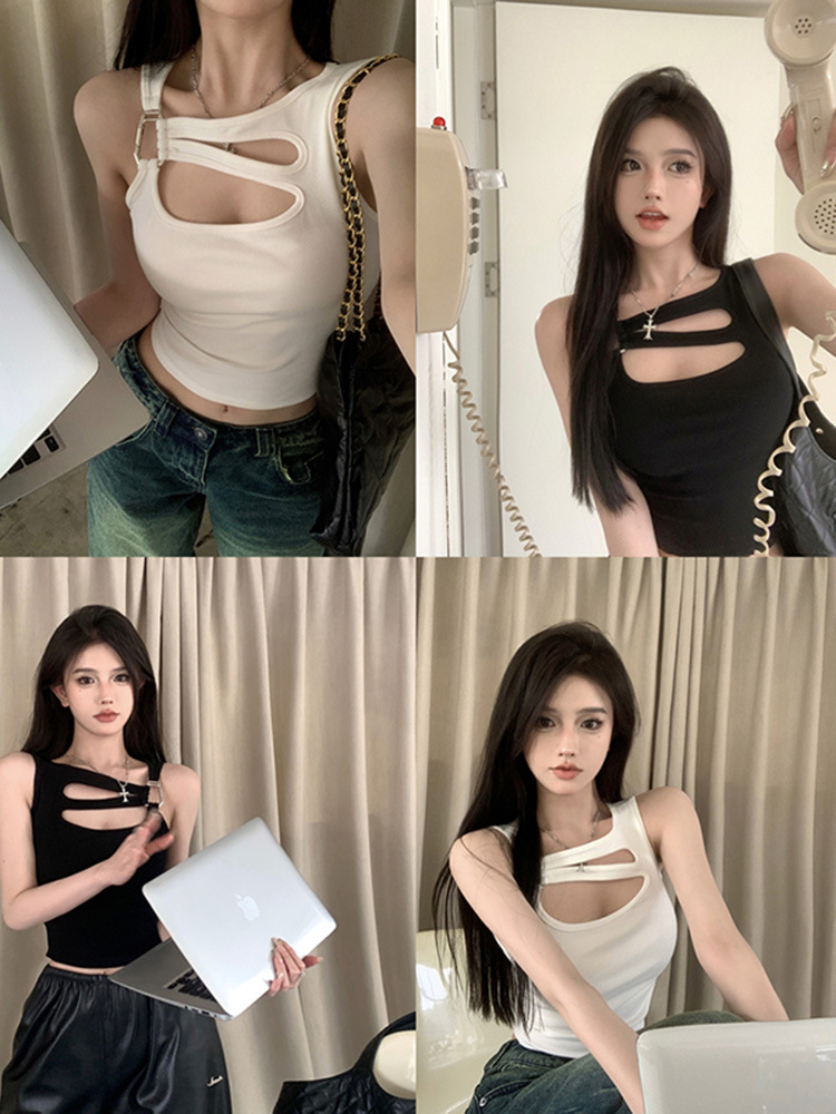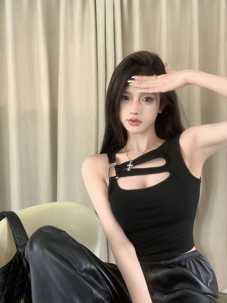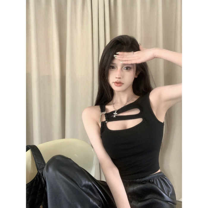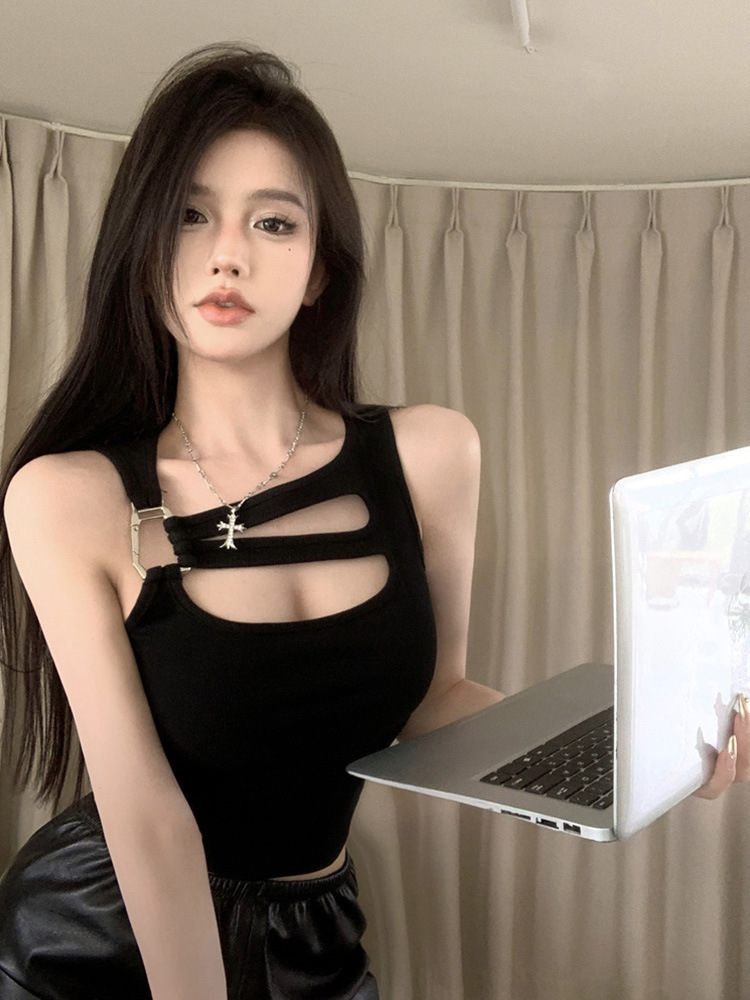 纯欲辣妹镂空吊带背心女夏季性感外穿内搭打底美式不规则短款上衣