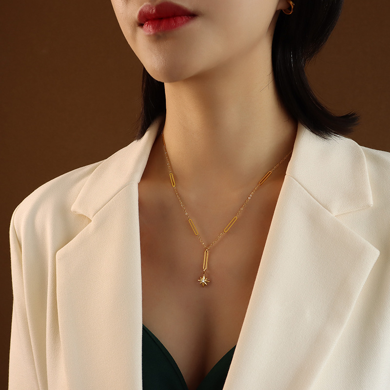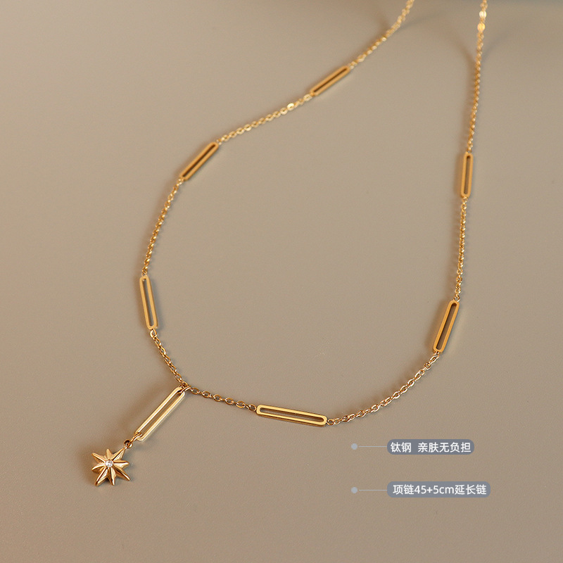 韩潮新款ins风小众设计六芒星吊坠锁骨链简约个性流苏项链饰品女