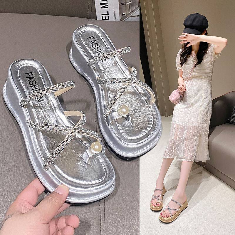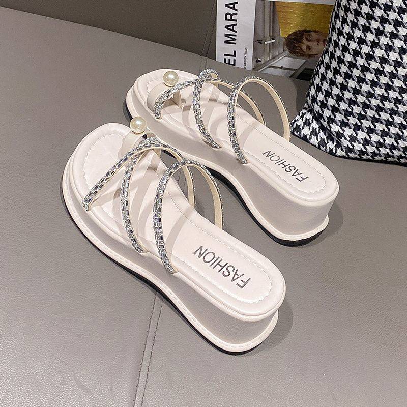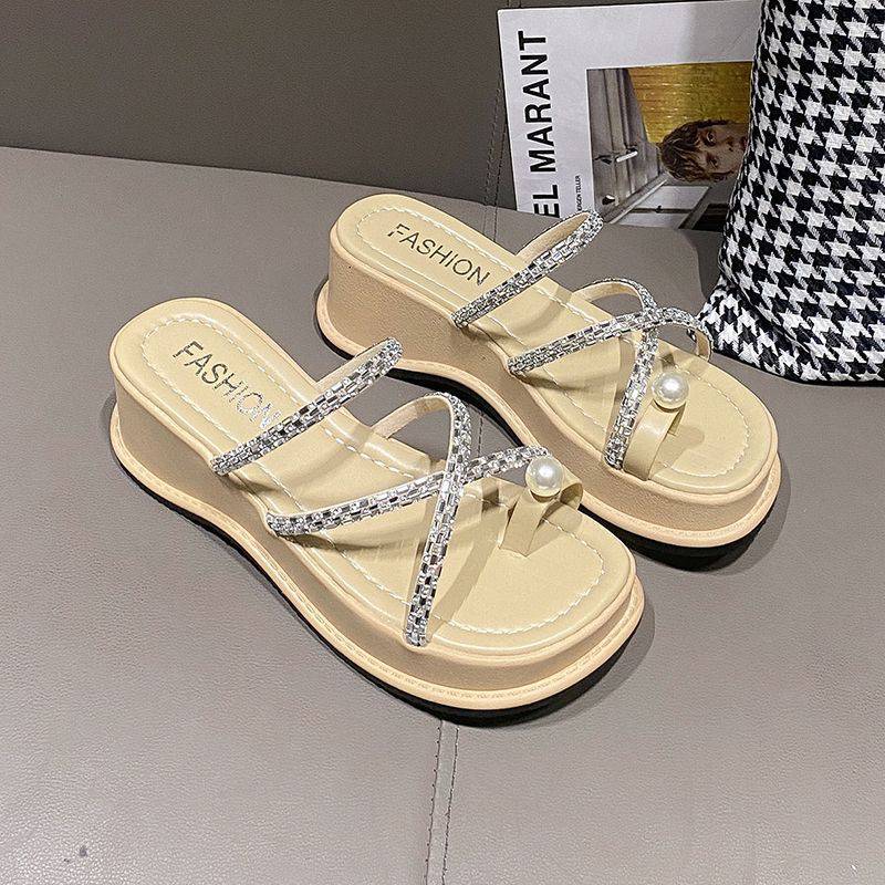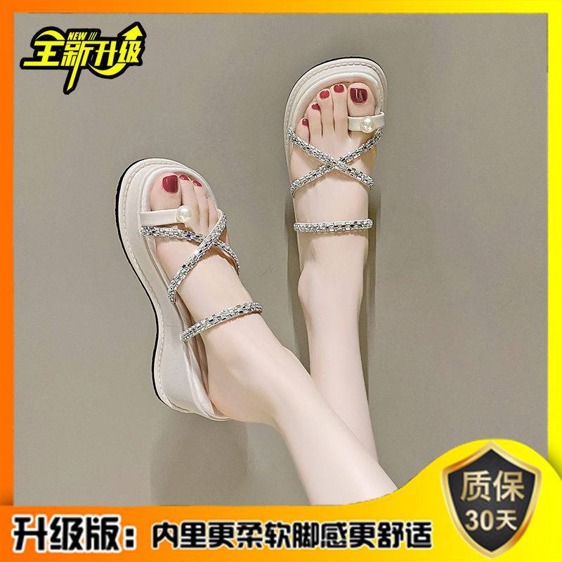 高跟凉拖鞋女厚底外穿网红气质百搭小香风夹脚人字拖软底坡跟女鞋