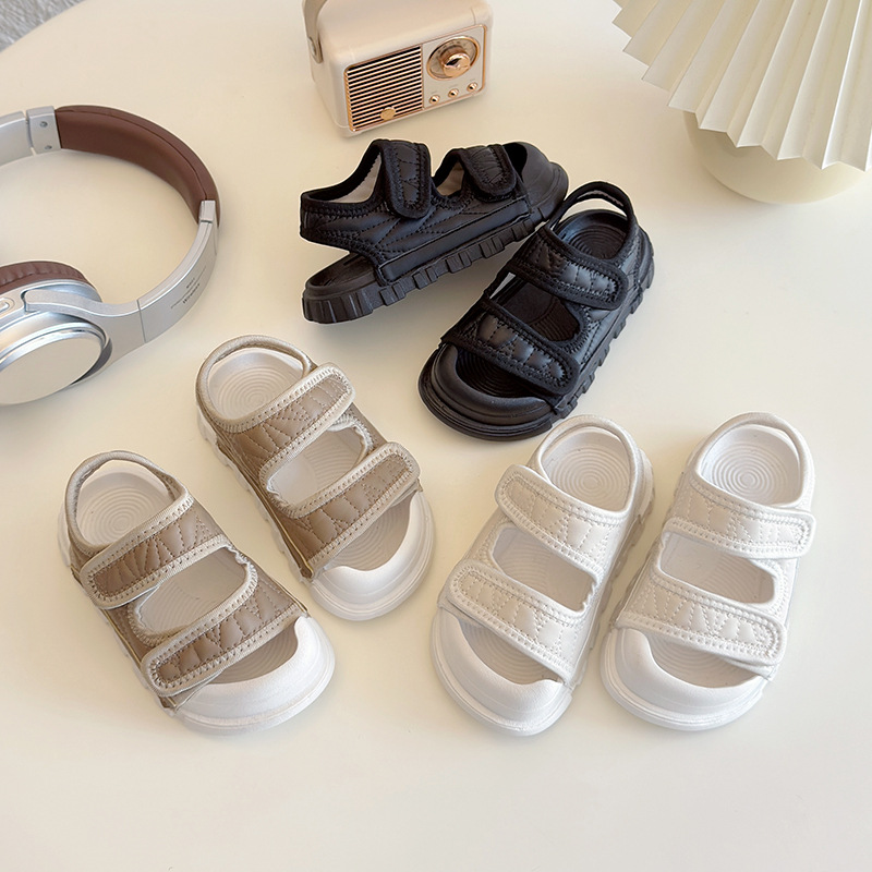 女童休闲凉鞋2025夏季男宝魔术贴公主鞋儿童镂空防踢半包头沙滩鞋