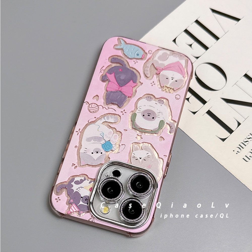 粉色少女心卡通壳侣适用苹果15Promax手机壳iPhone13软14保护套12