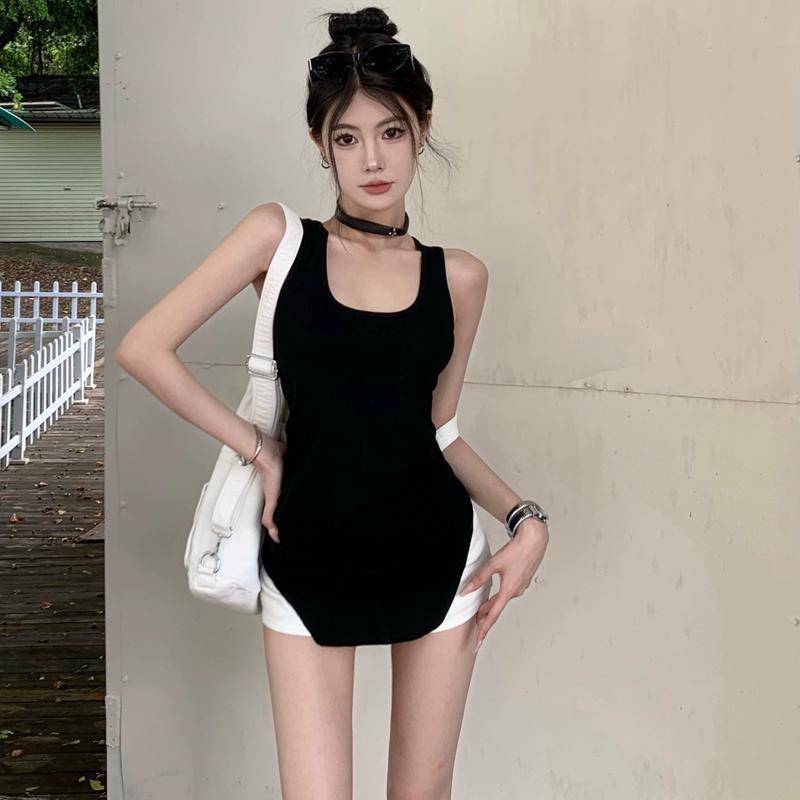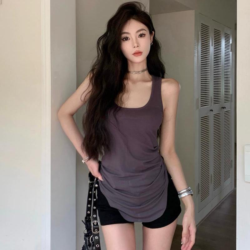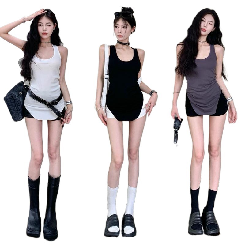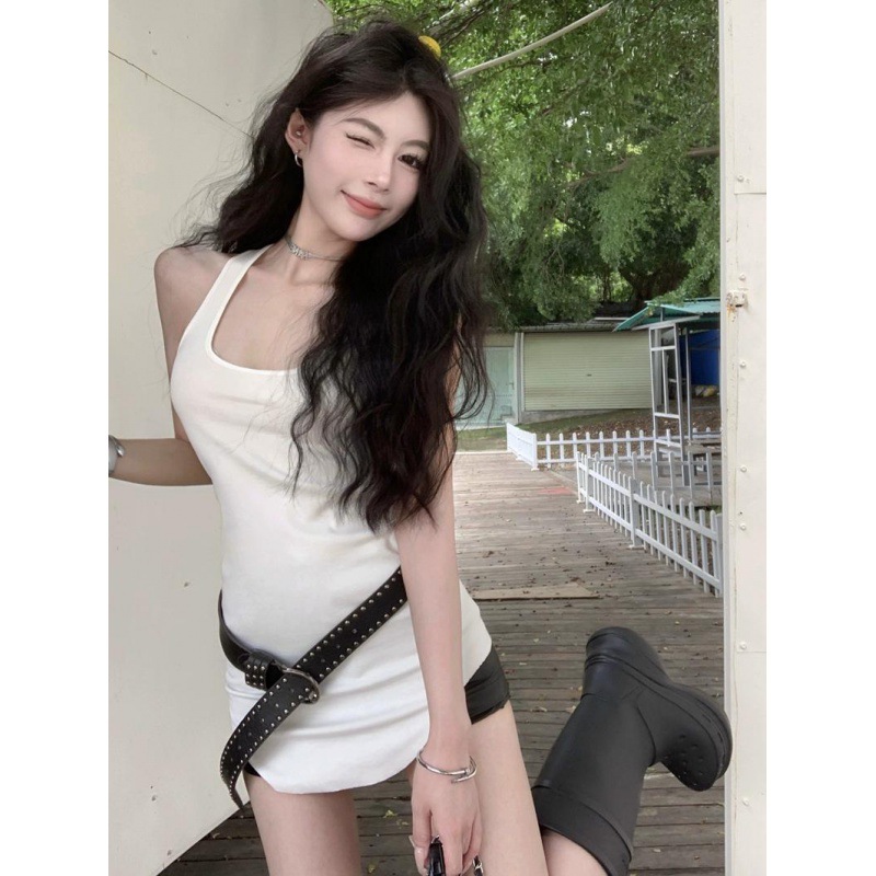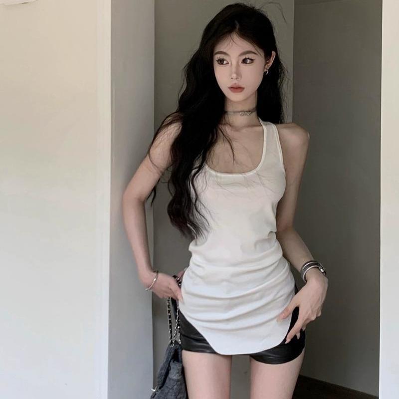 美式白色中长款工字背心吊带女夏季型下摆修身无袖辣妹上衣外穿