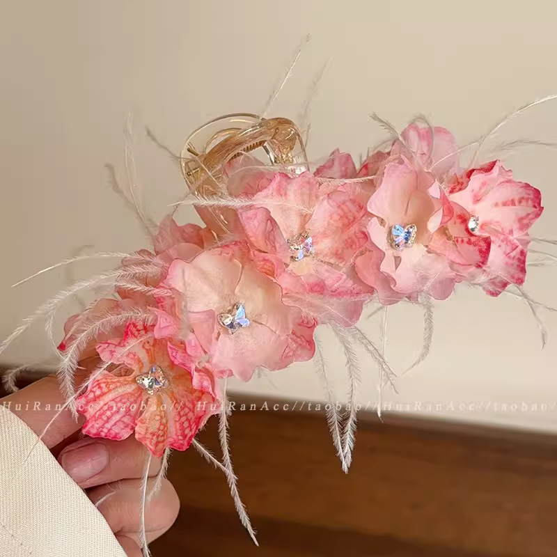 超仙羽毛花朵发夹女后脑勺盘发鲨鱼夹新款爆款大号抓夹头饰