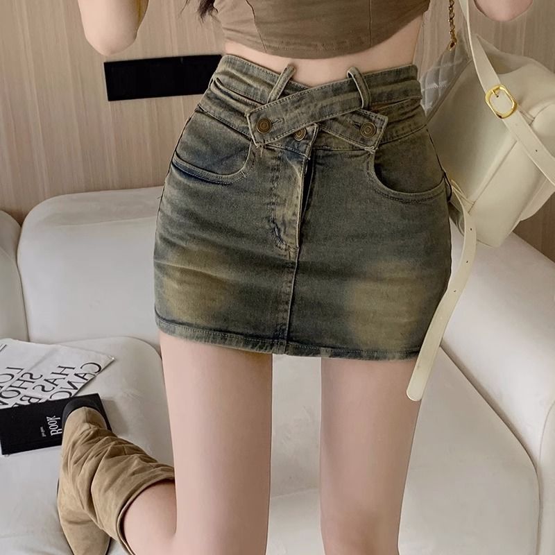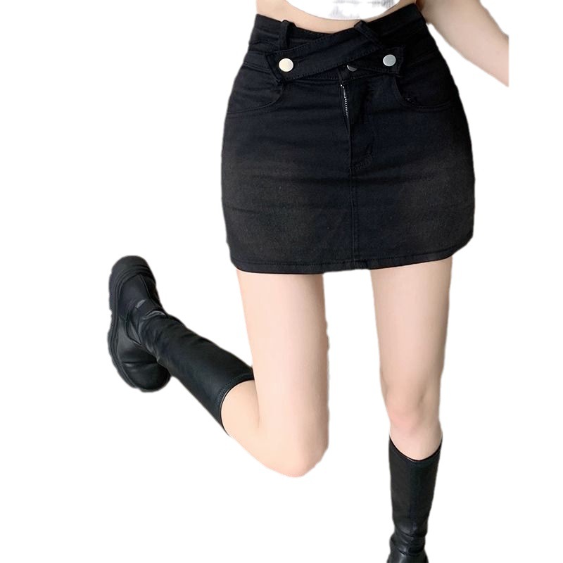 美式复古牛仔半身裙女春夏季高腰a字包臀裙半裙辣妹短裙子