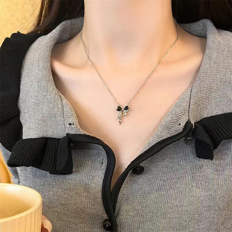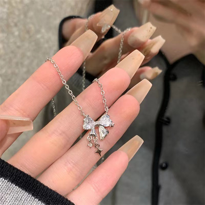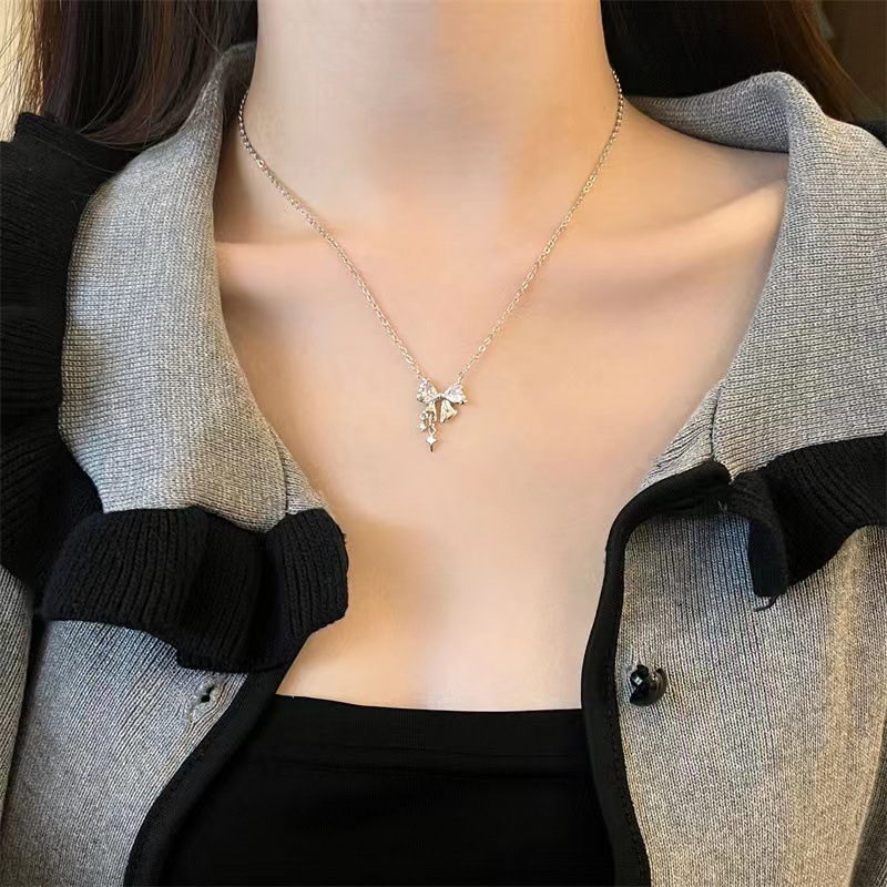 s925纯银蝴蝶结锆石项链女轻奢百搭韩国时尚ins高级感锁骨链