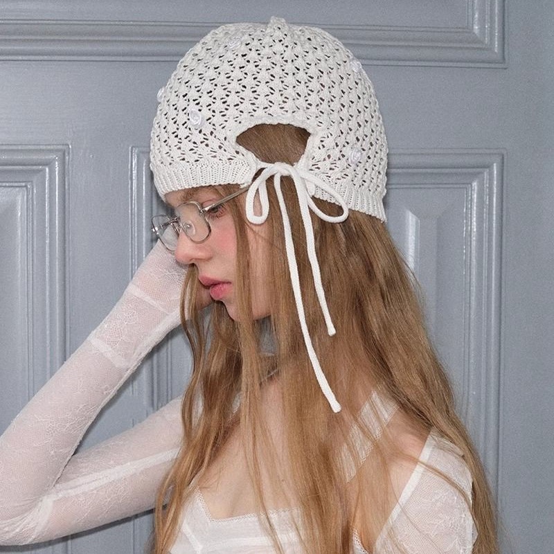 镂空渔夫帽韩国夏季手工纯棉针织帽玫瑰花复古个性百搭透气包头帽