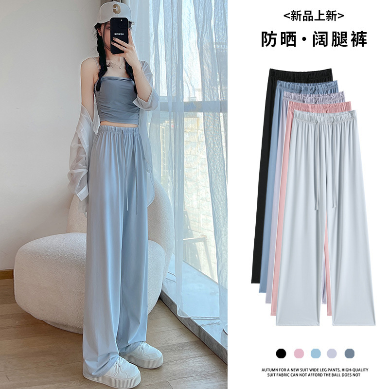 锦纶防晒裤女裤夏天女裤子新款垂感直筒休闲裤女装冰丝阔腿裤