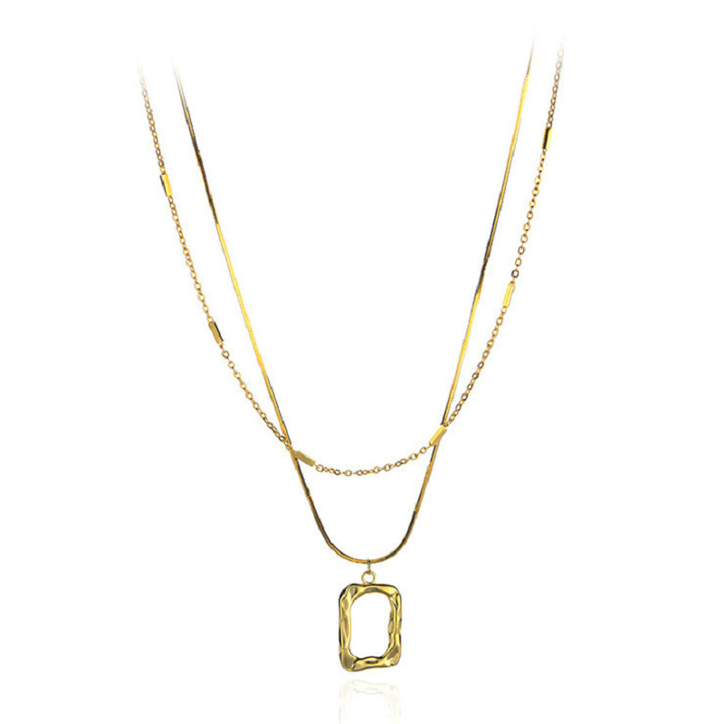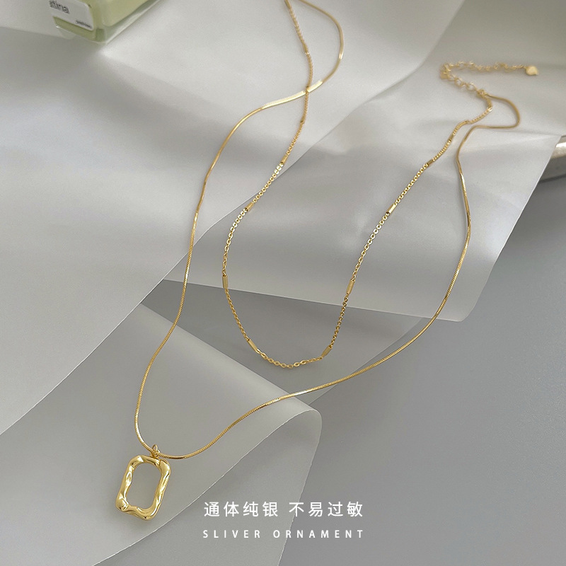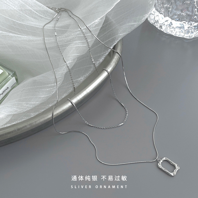 方形吊坠S925纯银双层叠戴毛衣链秋冬高级感项链女卫衣项链银饰品