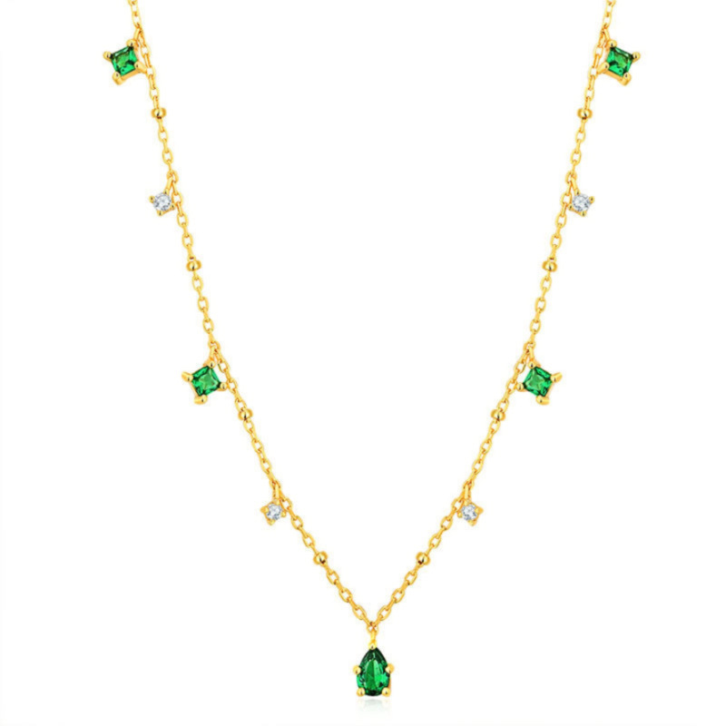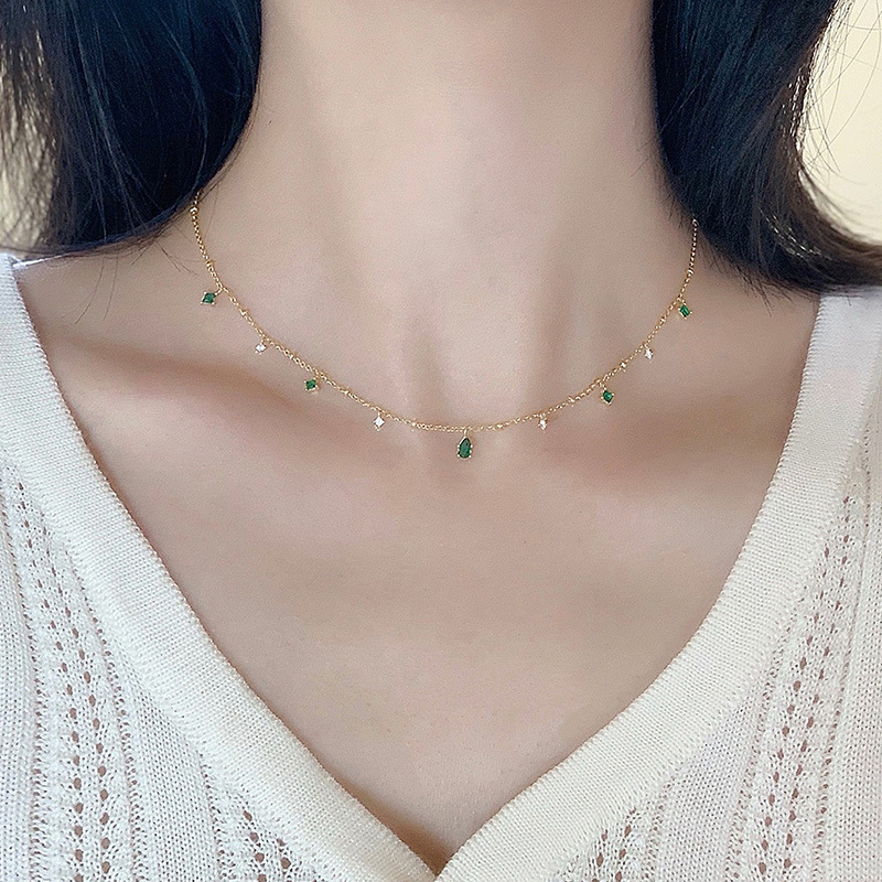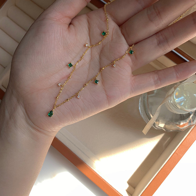 s925纯银项链女法式复古优雅小众设计感祖母绿水滴锆石轻奢锁骨链