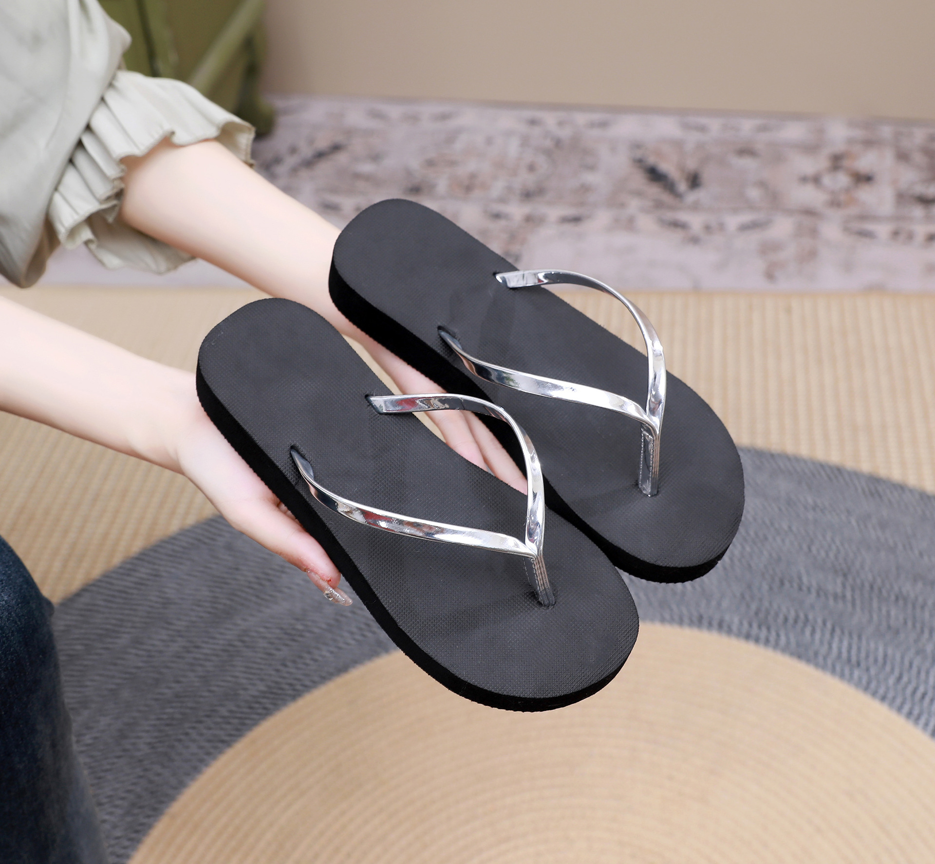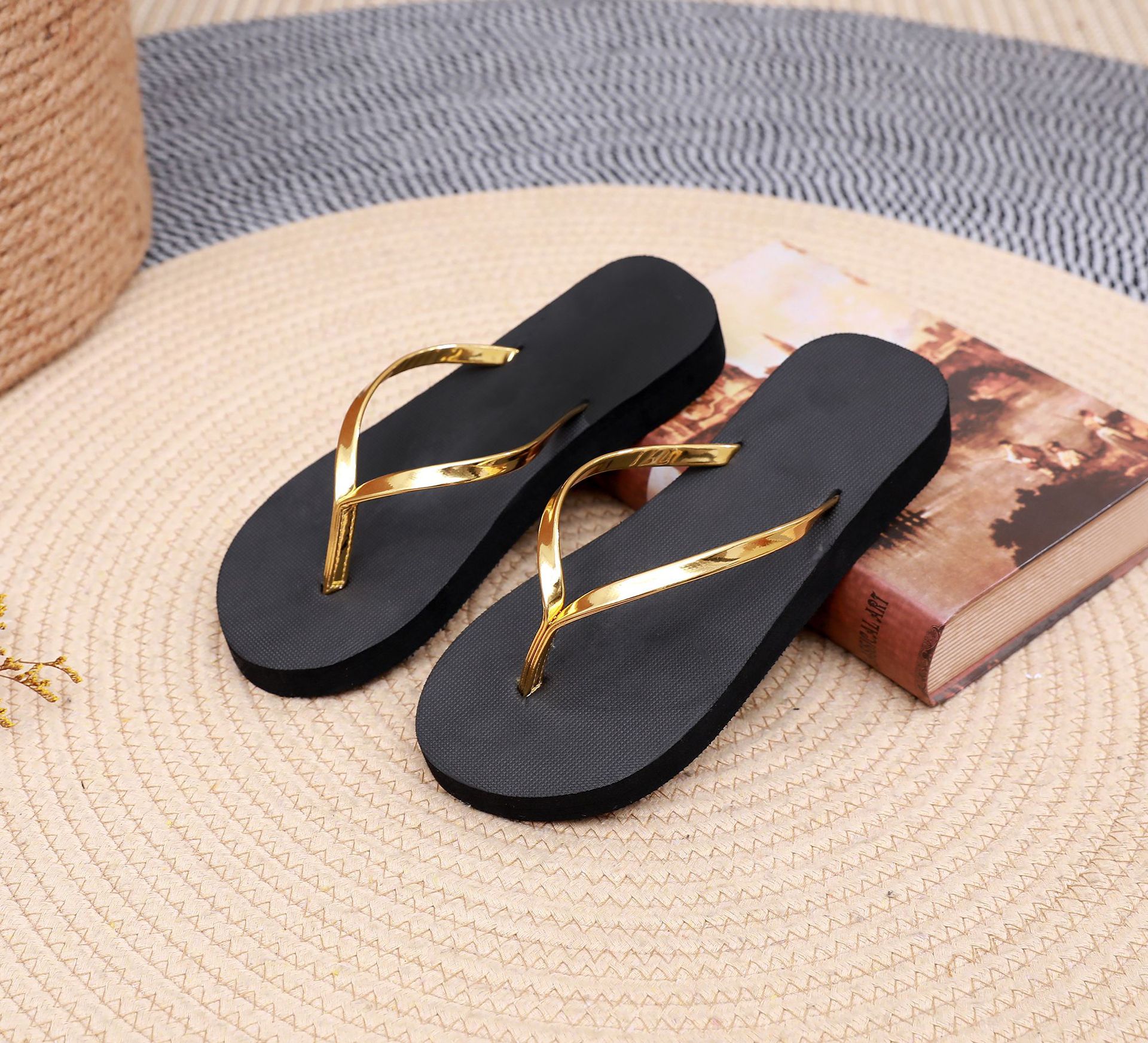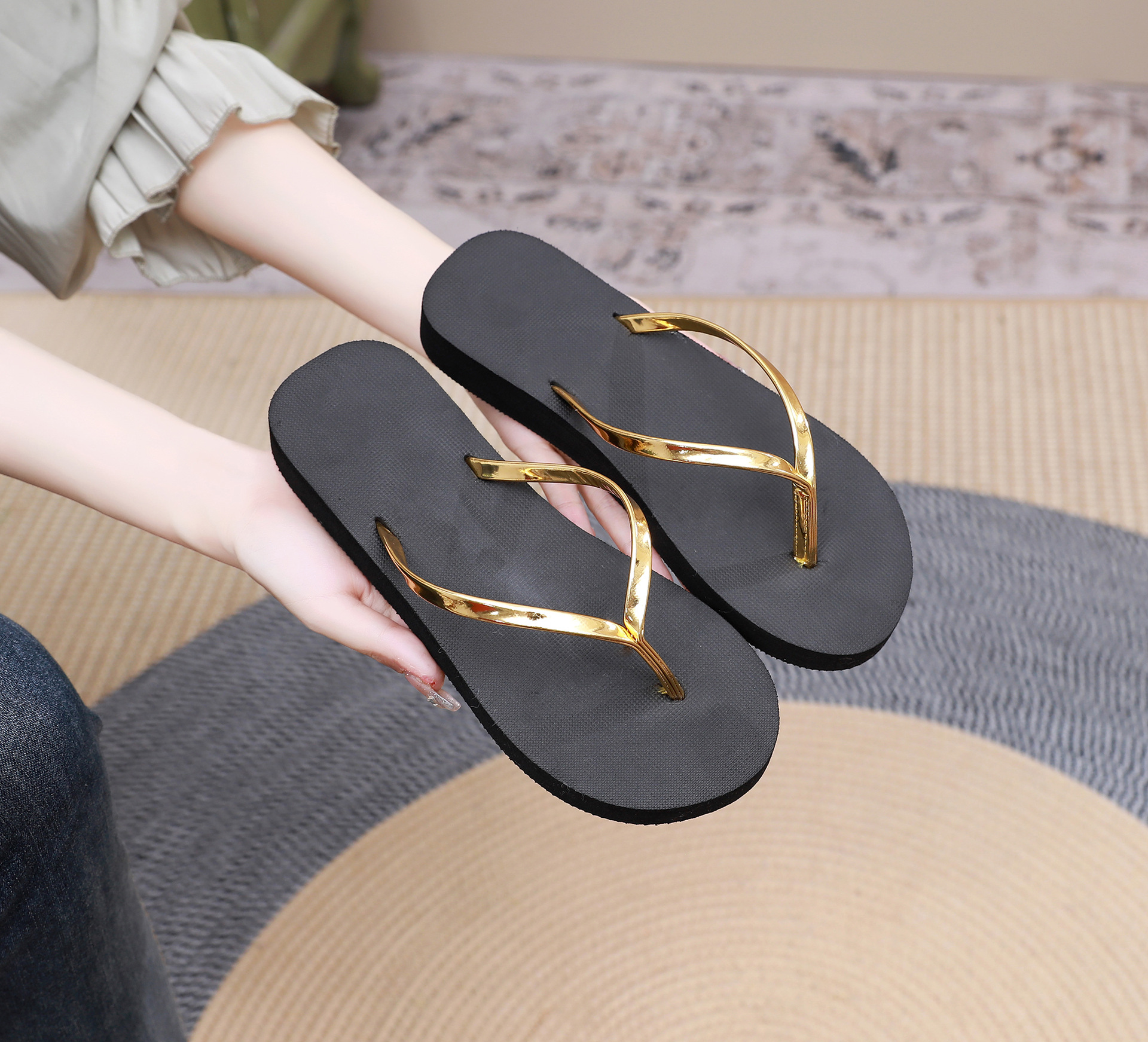坡跟PU细带夏季新品人字拖女时尚简约沙滩鞋防滑凉拖鞋外穿拖