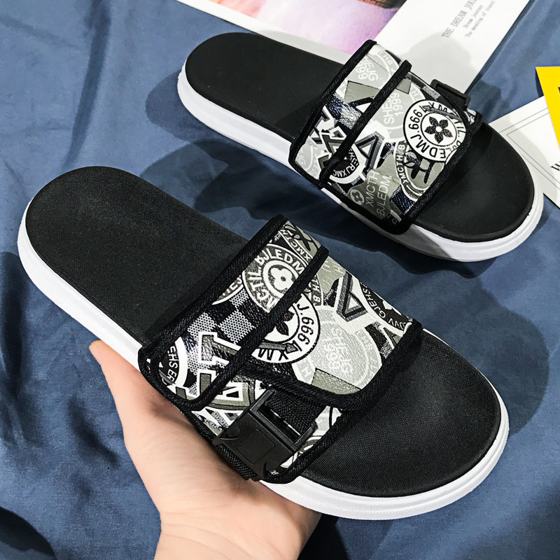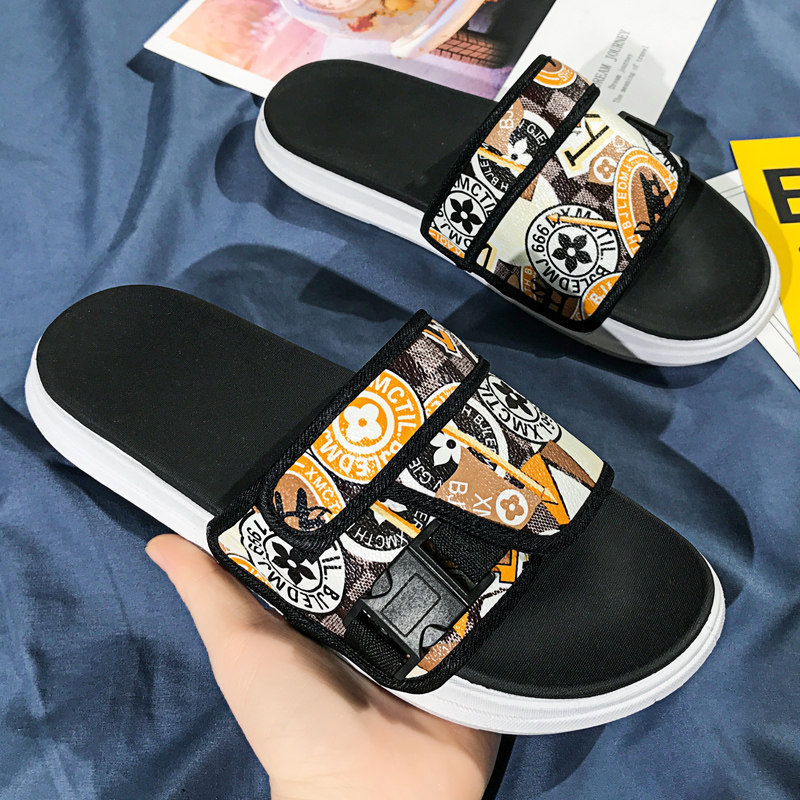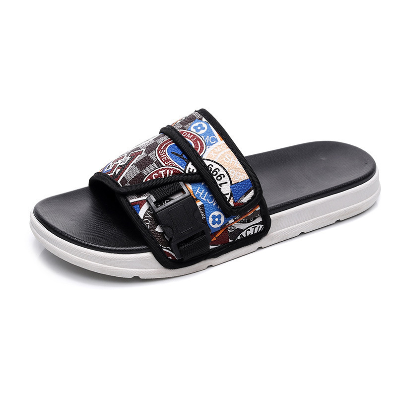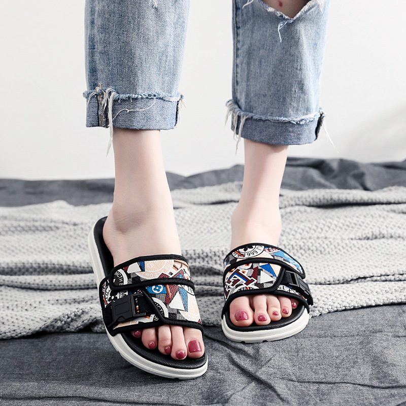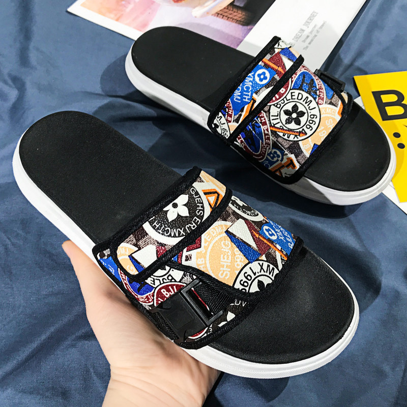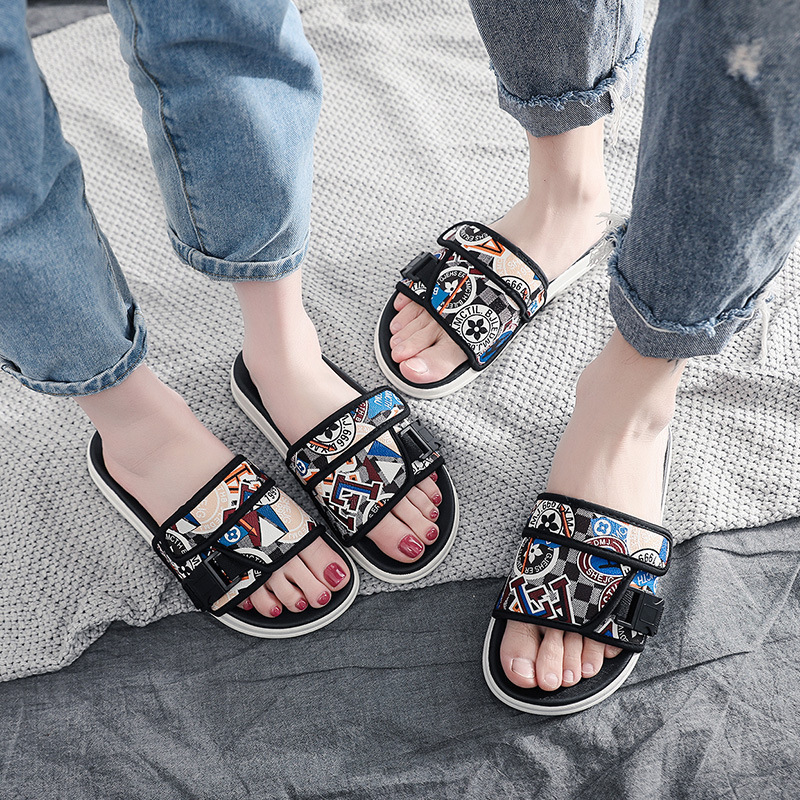 新款花色网红男女个性情侣一字拖鞋男潮流时尚夏季沙滩鞋舒适外穿