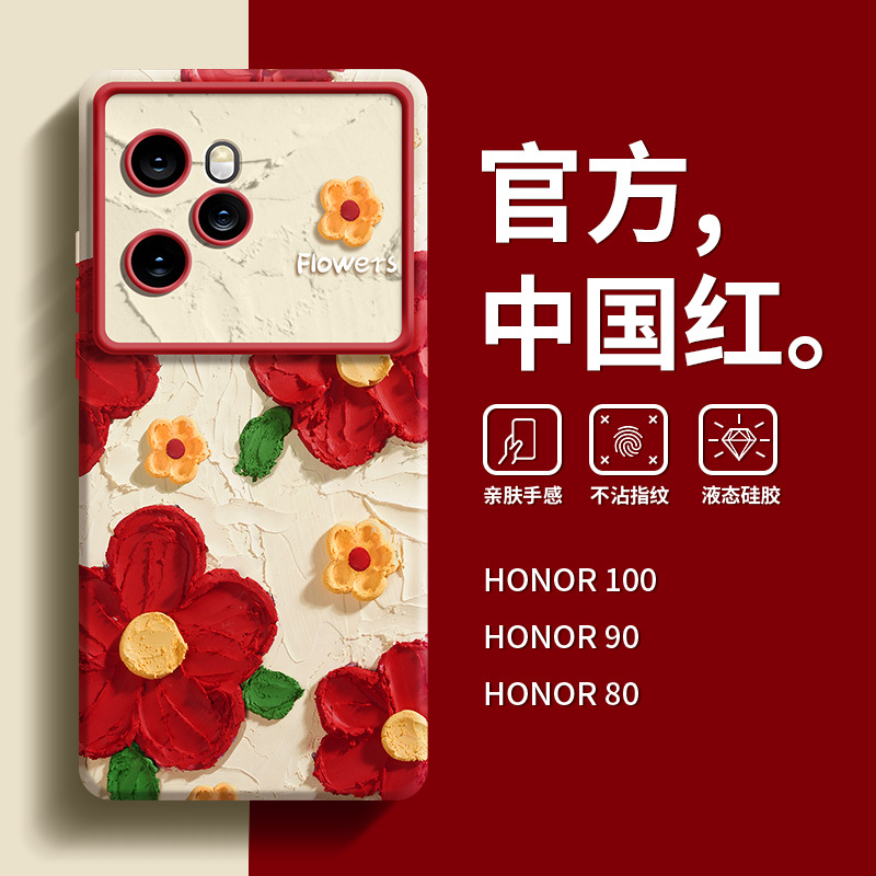 中国红适用于荣耀100pro手机壳荣耀90液态硅胶honor新款80pro防摔