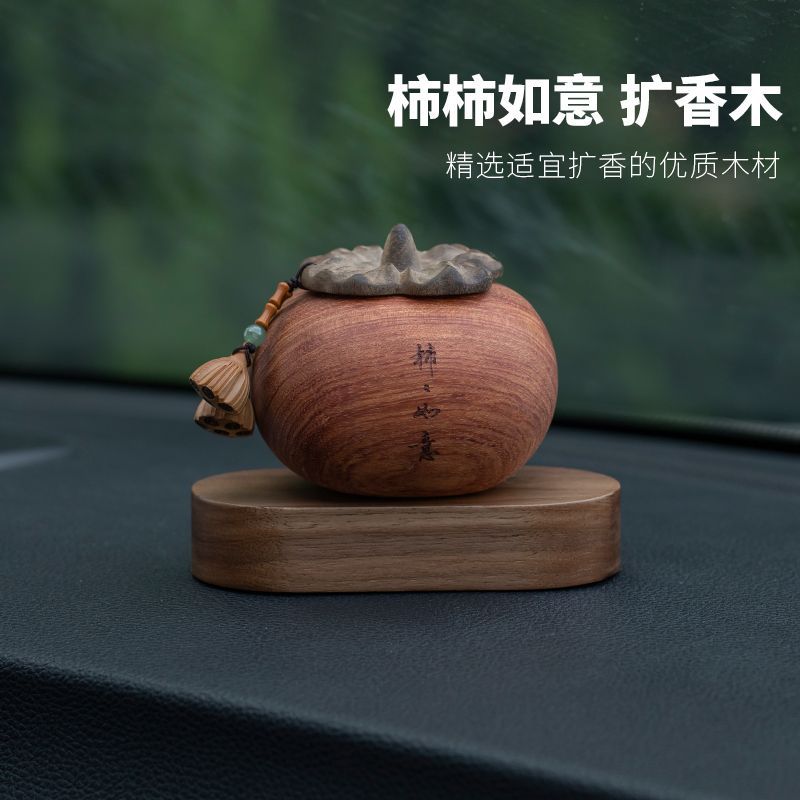 木质柿柿如意汽车中控台摆件扩香器香薰精油柿子家居卧室饰品