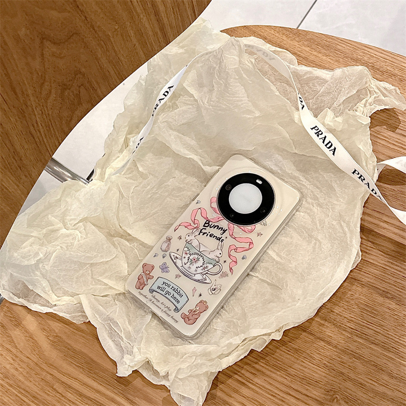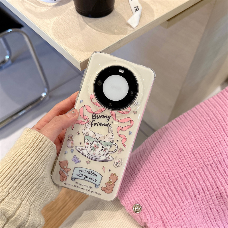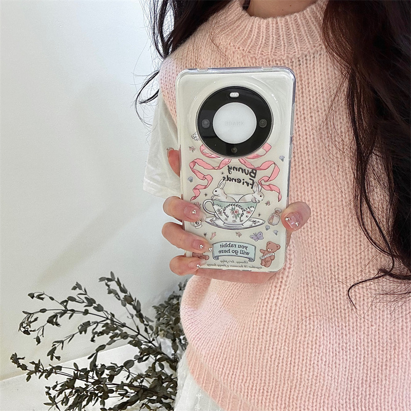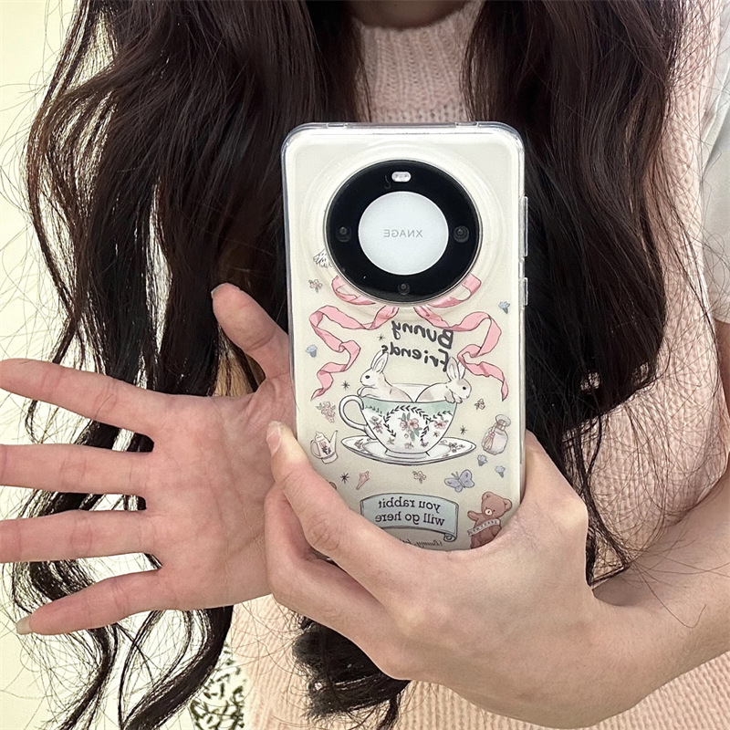 卡通茶杯兔兔双层适用华为mate60pro+/50/40手机壳 p60pro硅胶p60