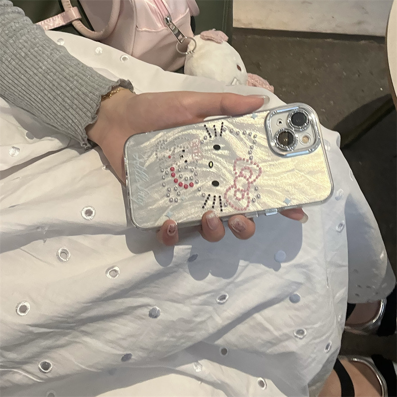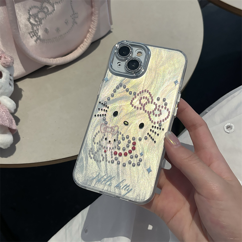 彩钻卡通小猫适用苹果15ProMax手机壳iPhone14防摔13可爱12个性11