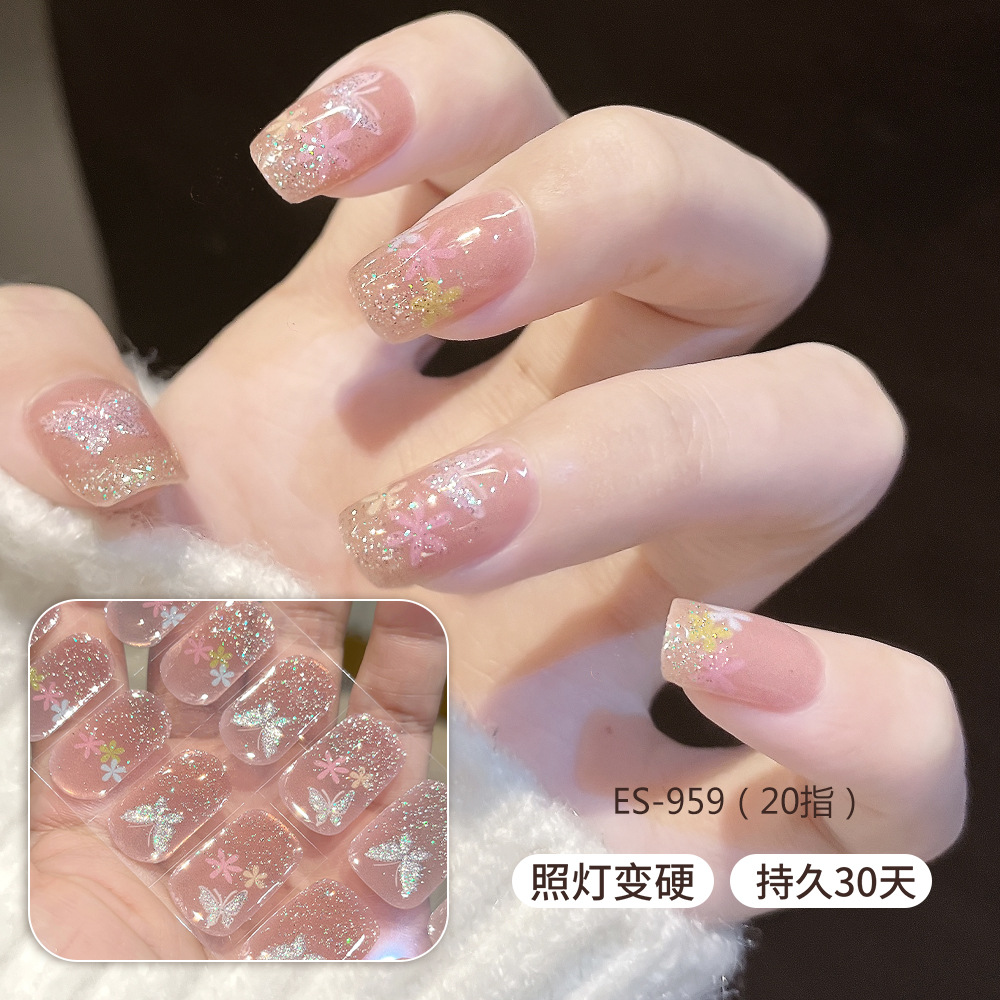 【ES959】20指半固化凝胶uv半烤美甲贴指甲贴片照灯变硬