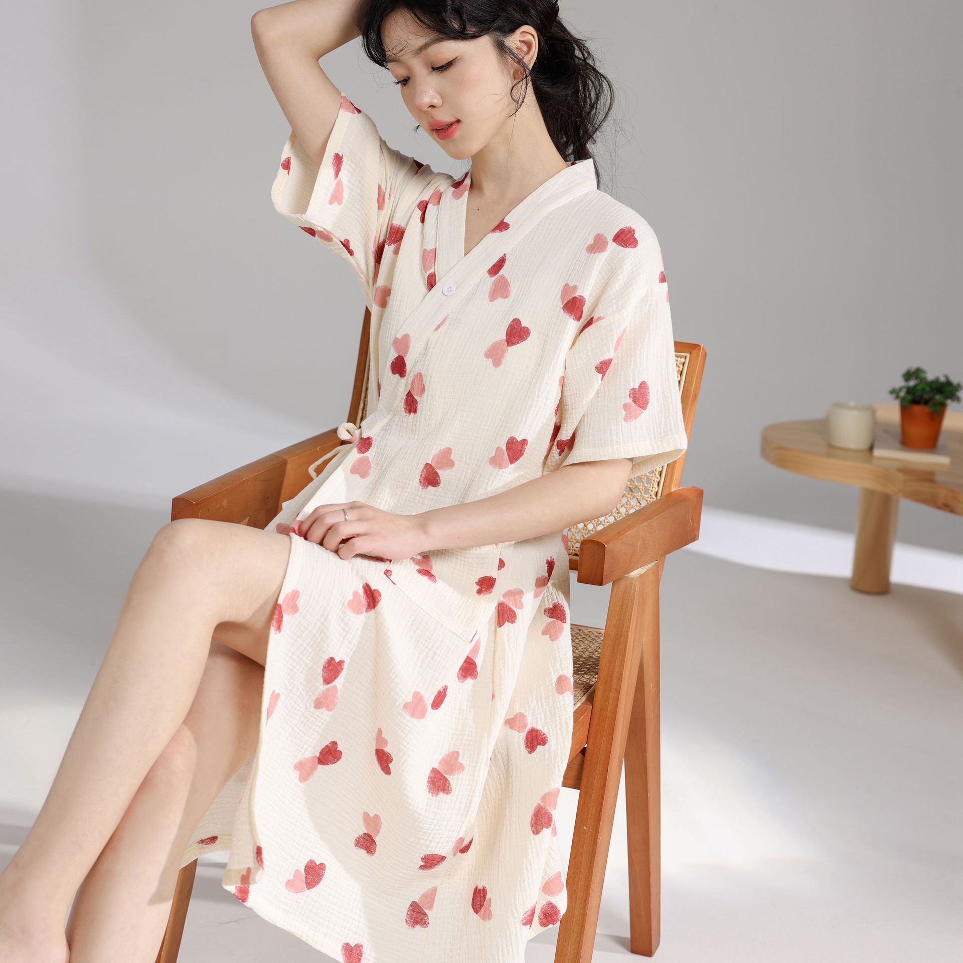 睡裙女夏纯棉纱布和服睡袍棉麻薄款日系甜美夏季家居服睡衣女