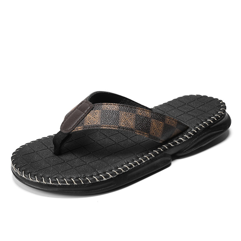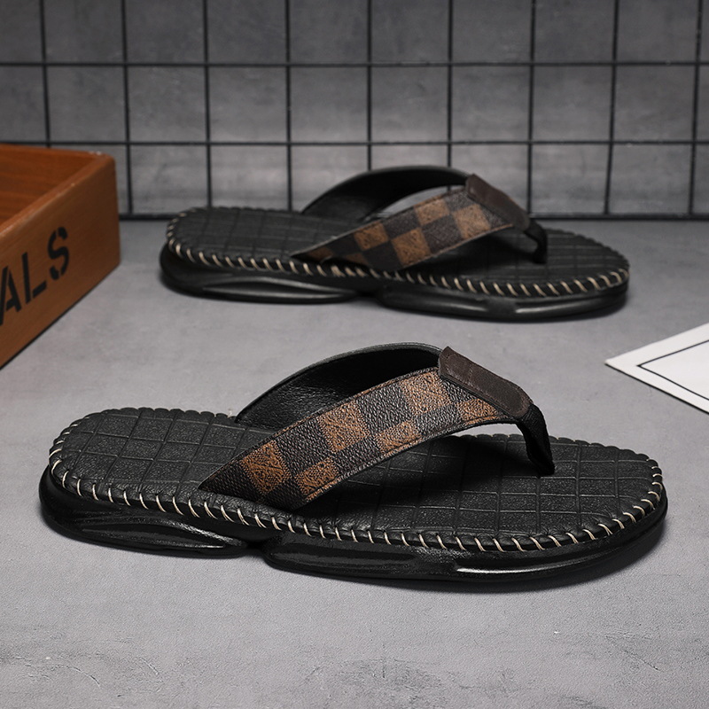 人字拖鞋男夏季外穿防滑防臭真皮软底男士夹脚运动高级感沙滩凉鞋