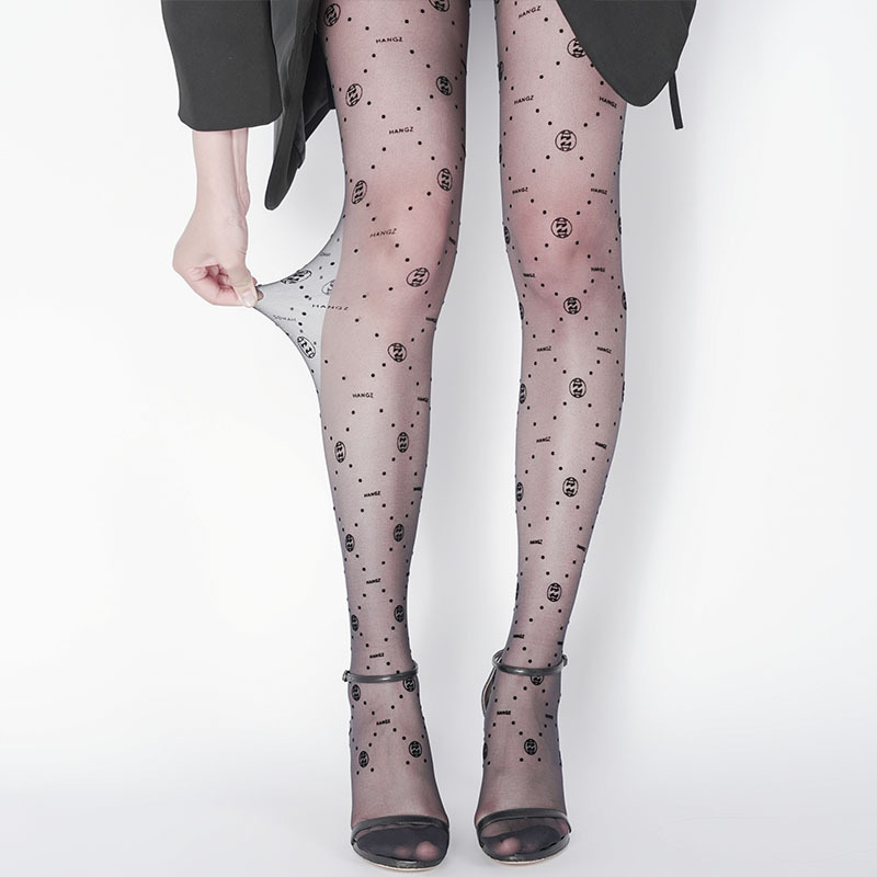 袜子女夏季网红性感丝袜时尚薄款 双c字母洛丽塔袜印花打底连裤袜