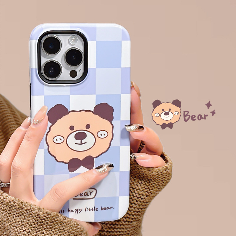 适用iPhone15PRO菲林二合一可爱小熊手机壳苹果13/14拼色硬保护套
