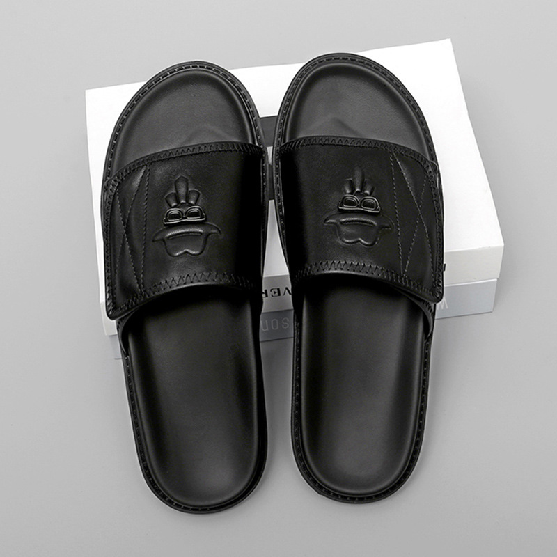 男鞋春季新款厚底运动头层牛皮拖鞋一字拖男款潮牌增高小众鞋