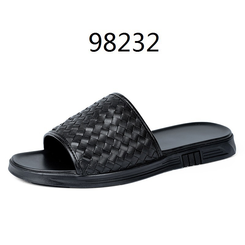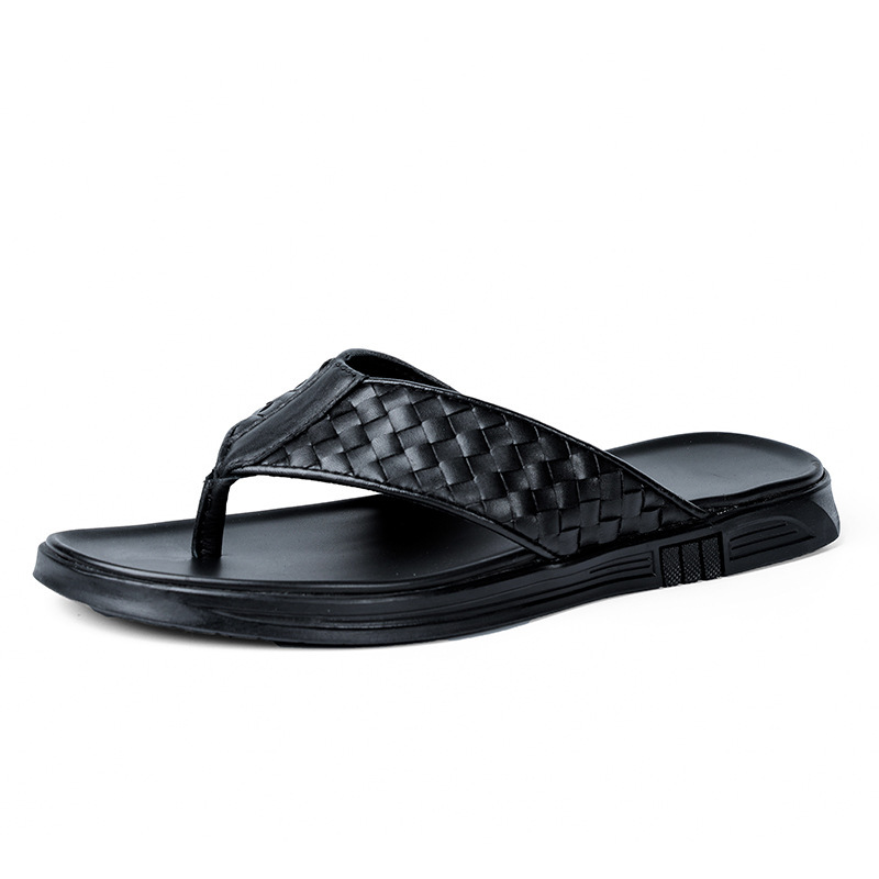 英伦潮流夏季人字拖真皮编织格纹头层牛皮男式凉拖鞋透气休闲拖鞋