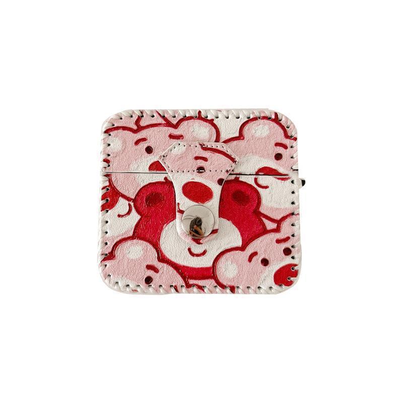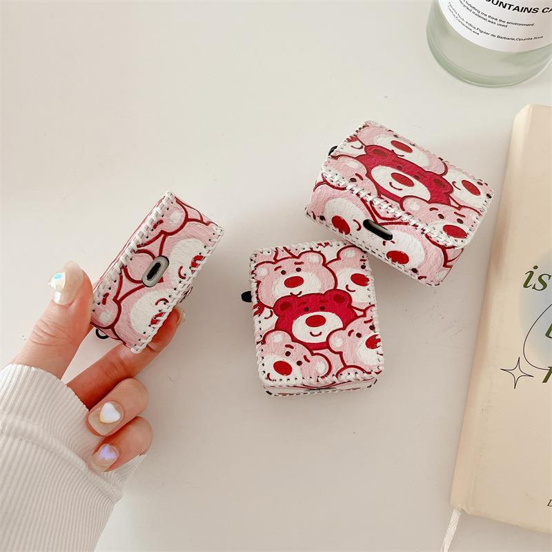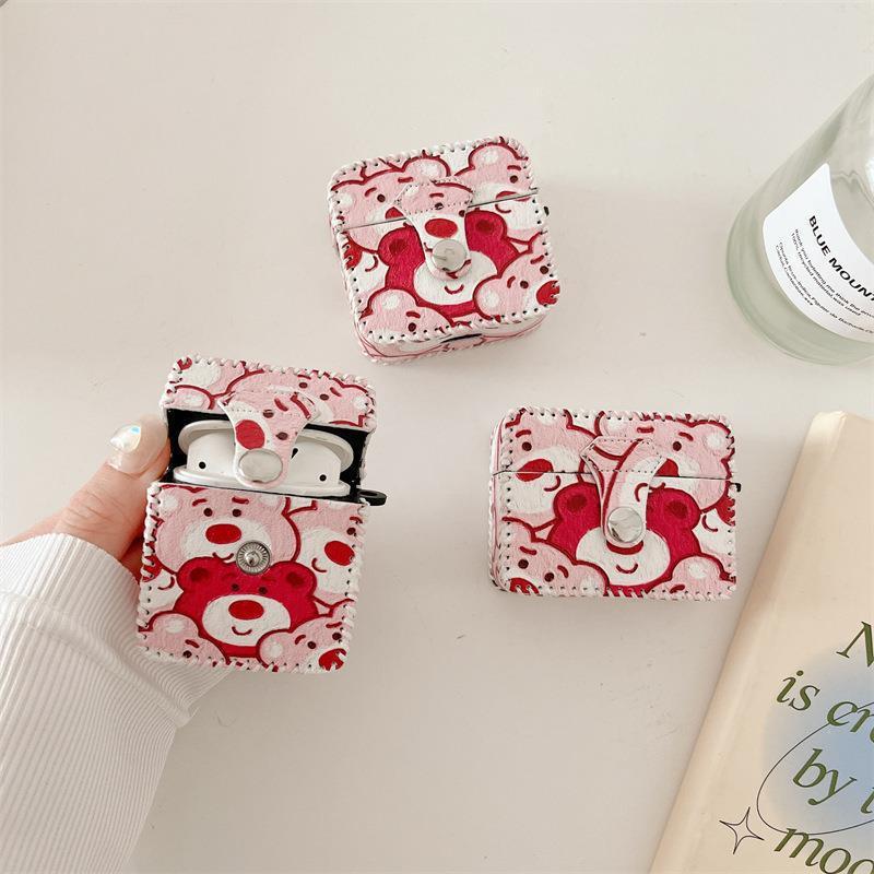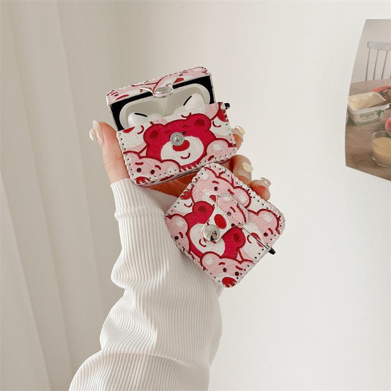 草莓熊适用苹果AirPods pro1/2/3代蓝牙无线耳机套纽扣创意保护壳