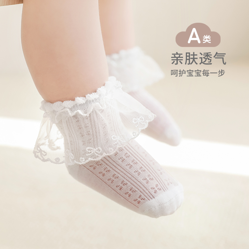 女宝宝夏季超薄款婴儿花边袜子新生儿夏天网眼透气女童蕾丝公主袜