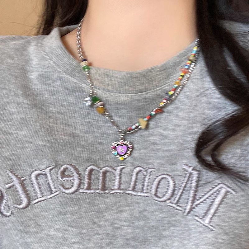 七彩石爱心项链女ins潮甜酷辣妹儿笑脸锁骨链高级设计感颈链女