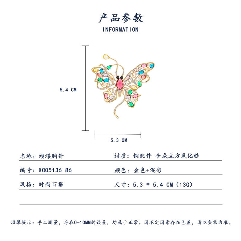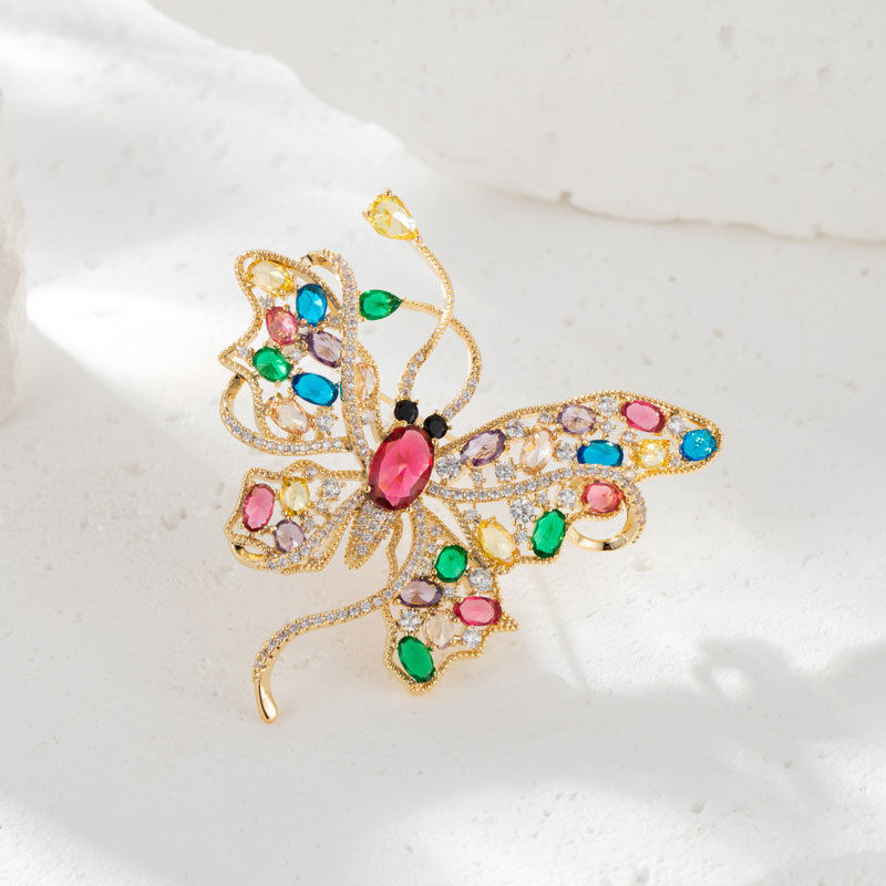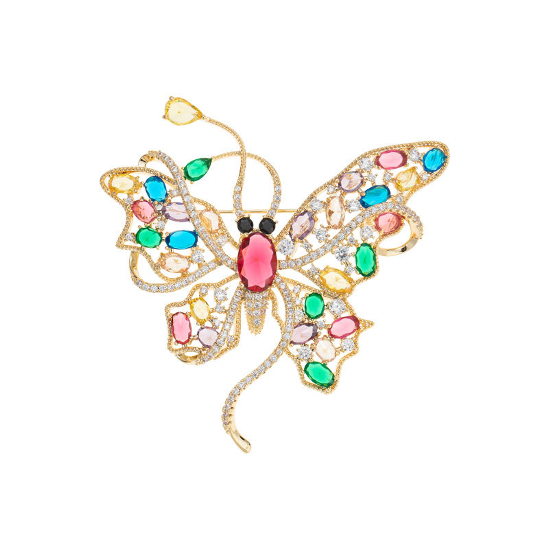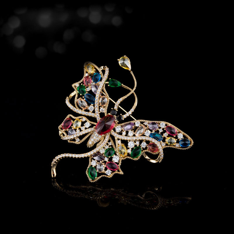高级感彩色锆石蝴蝶胸针小众奢华大气昆虫胸花新时尚优雅别针装饰