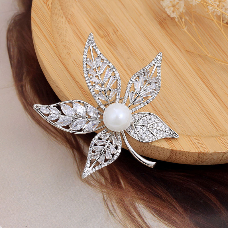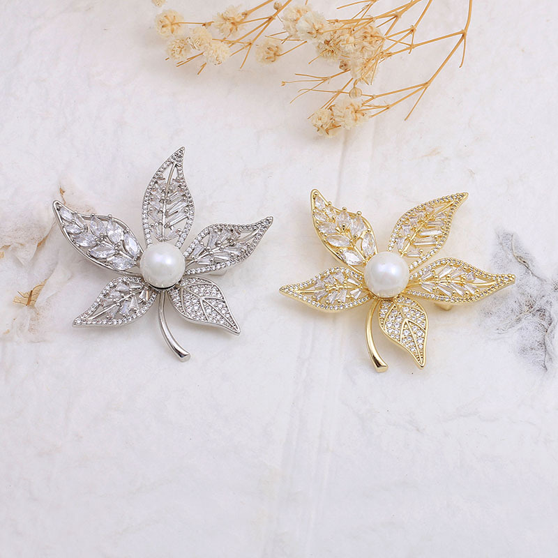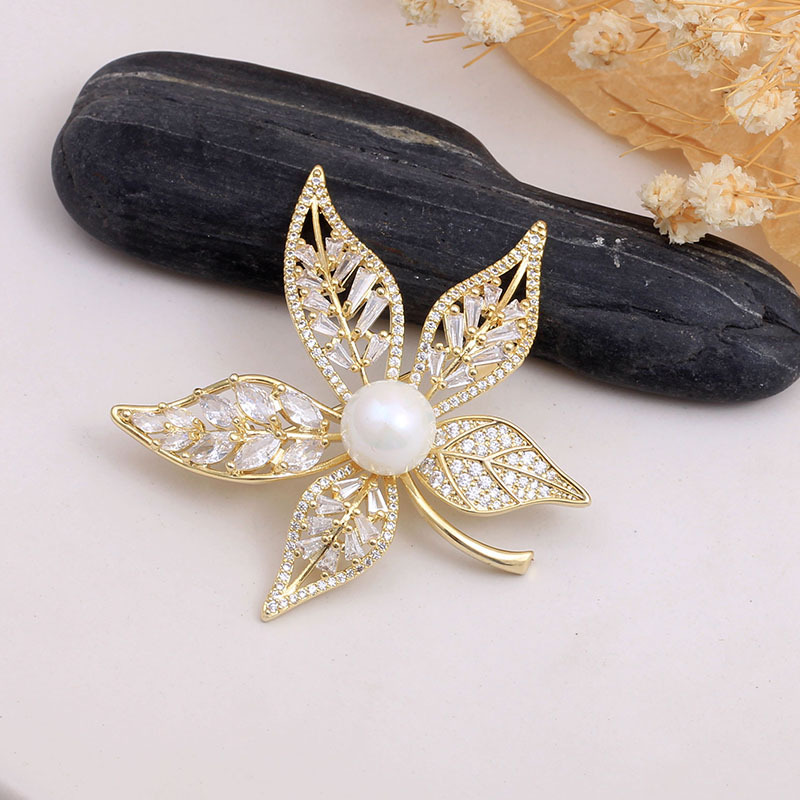 时尚通勤风胸针高档女设计感小众花卉枫叶珍珠别针西装外套配饰品