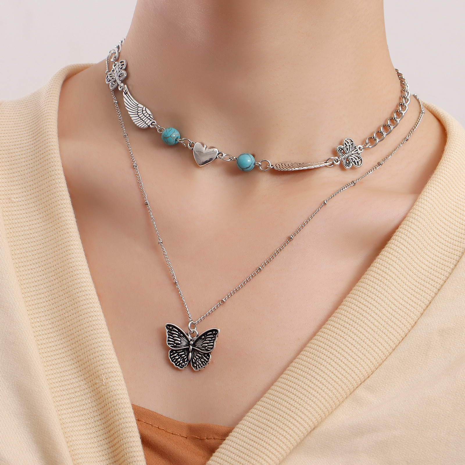 复古条纹蝴蝶天使灵动心翅膀项链女 小众设计感项饰