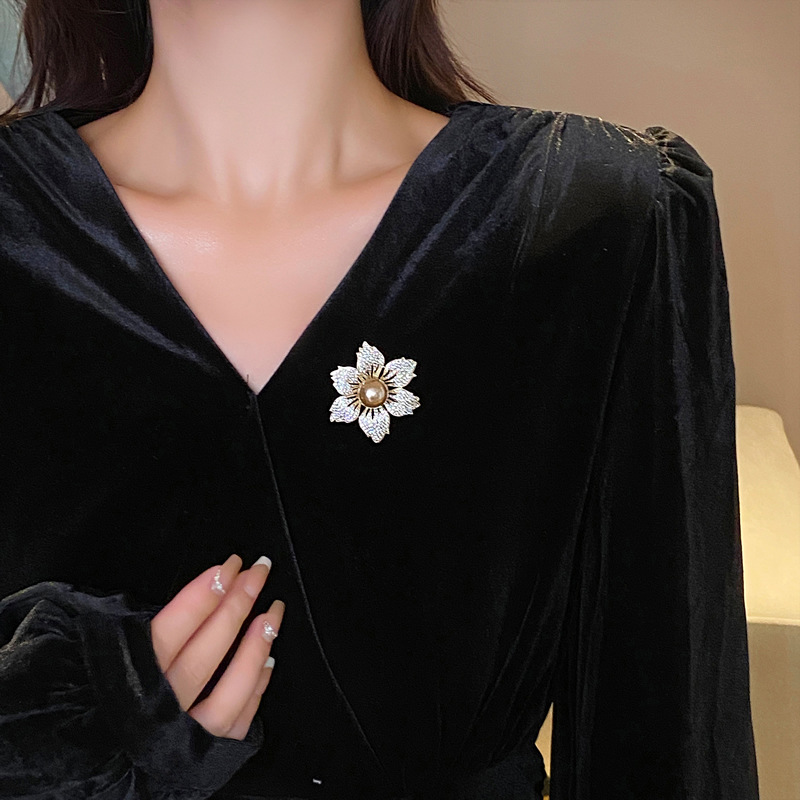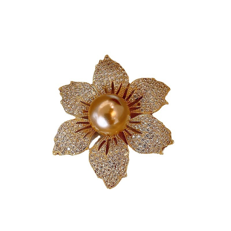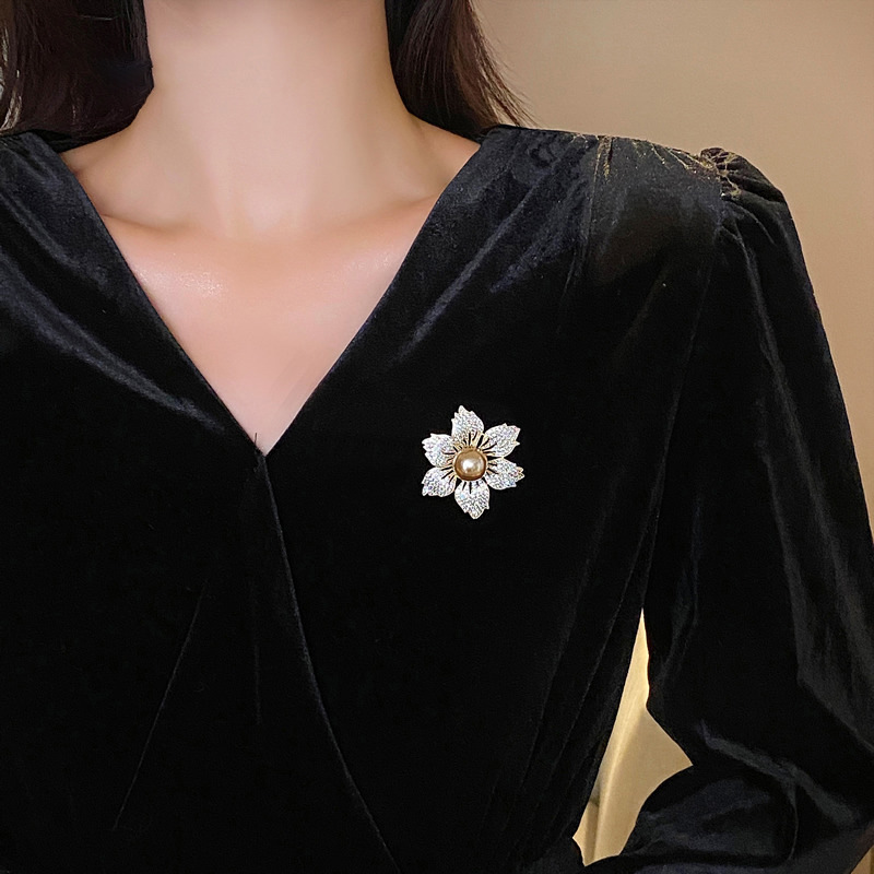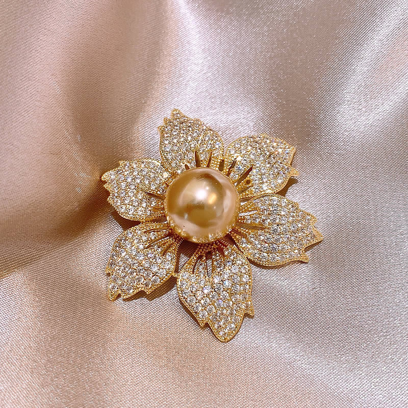 真金电镀锆石珍珠花朵胸针小众设计感胸花高级感配饰百搭饰品