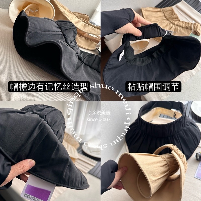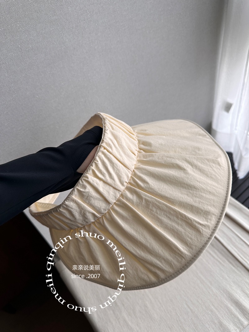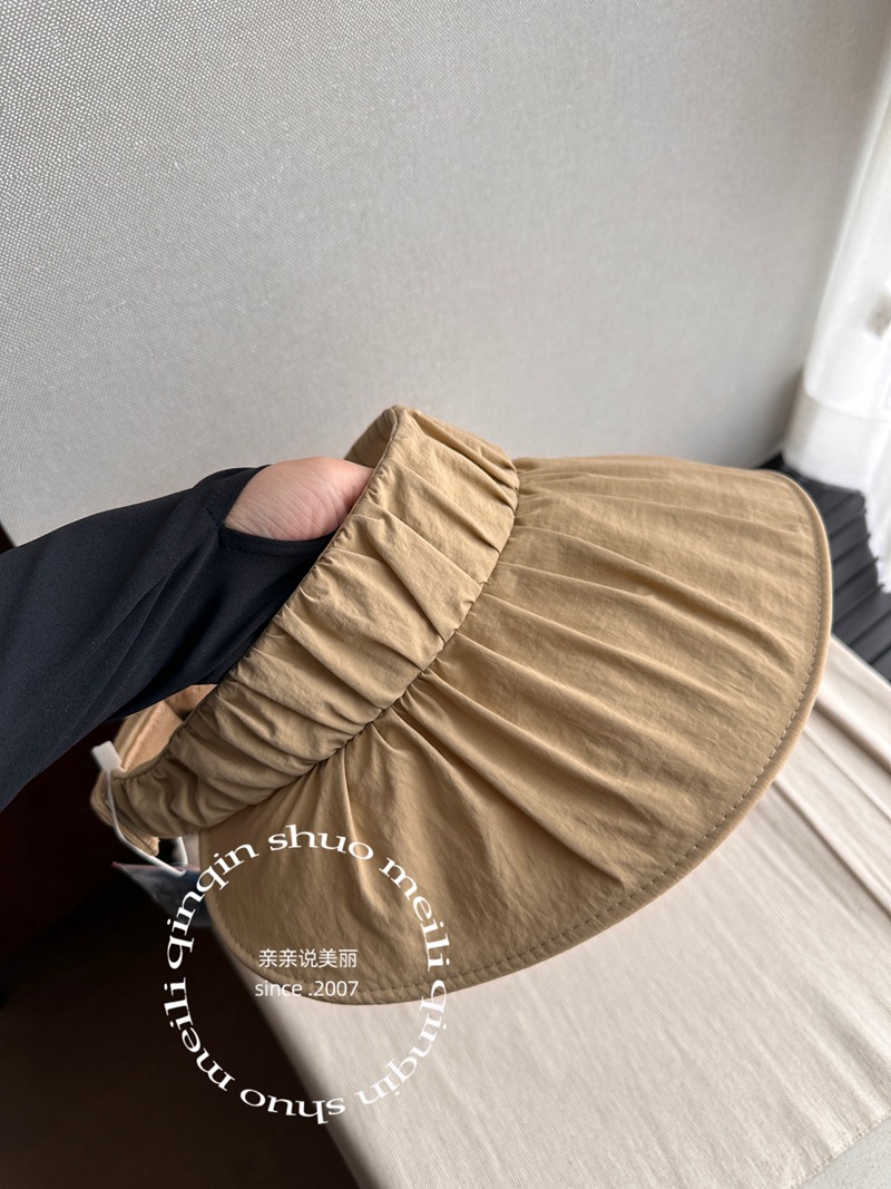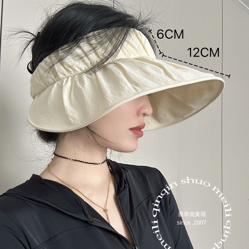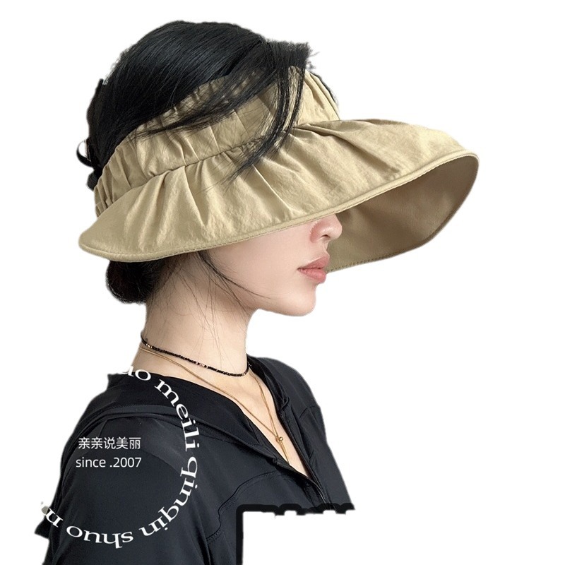 遮阳帽气质百褶防晒帽女显高颅顶轻盈空顶帽出游可折叠大檐遮阳帽