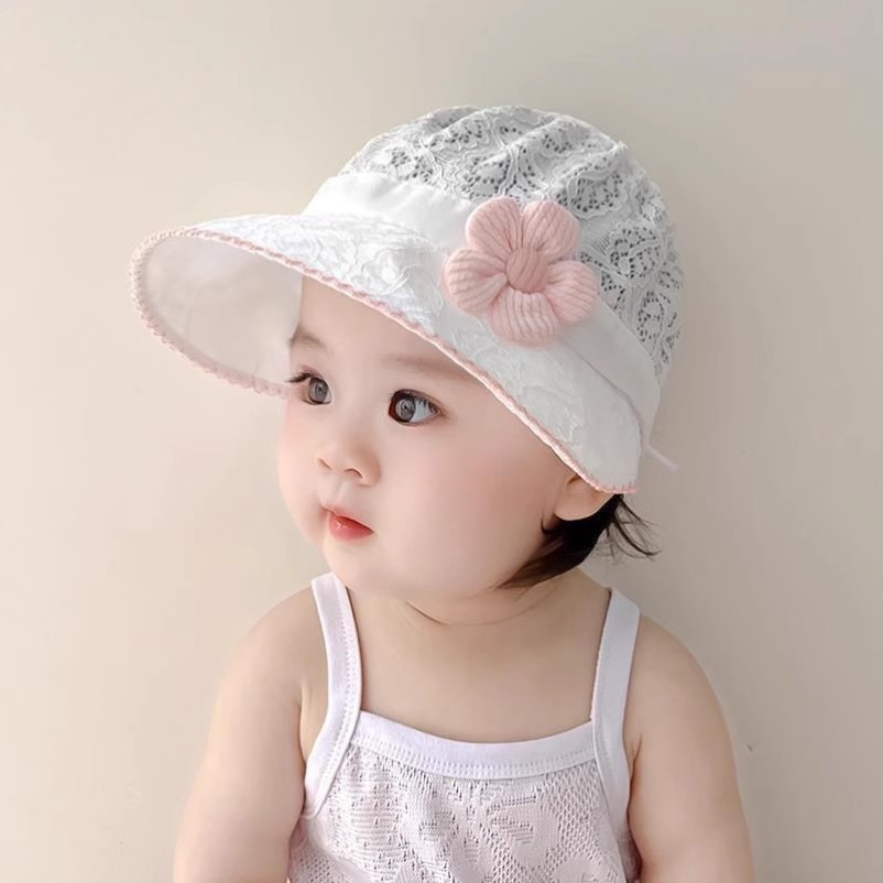 春夏季薄款婴儿帽子女宝宝时尚花朵渔夫帽婴幼儿童出游防晒遮阳帽
