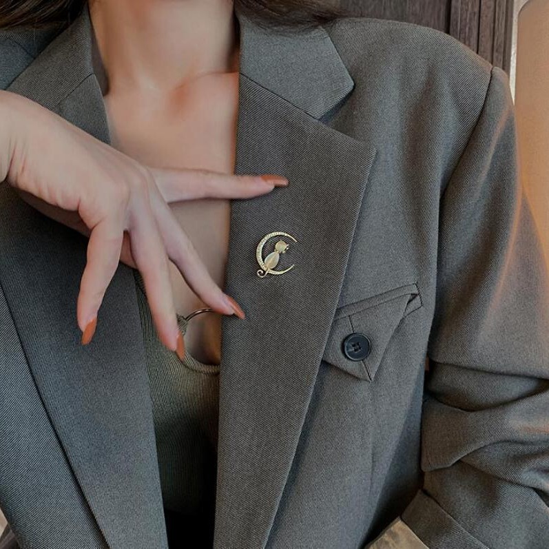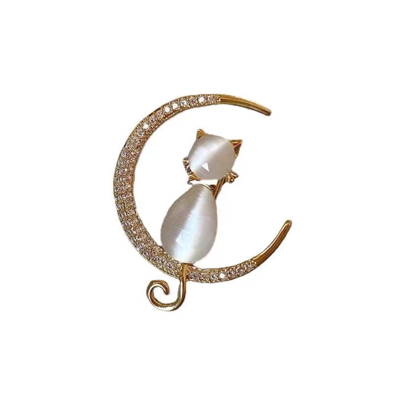 高级感小众韩版别针防走光轻配饰猫眼石月亮小猫胸针高档精致胸针