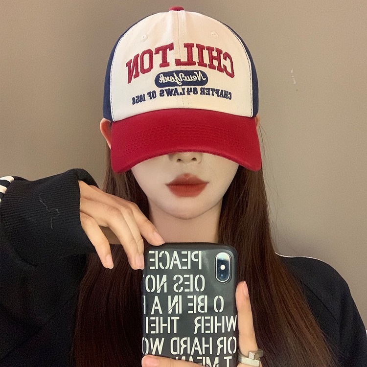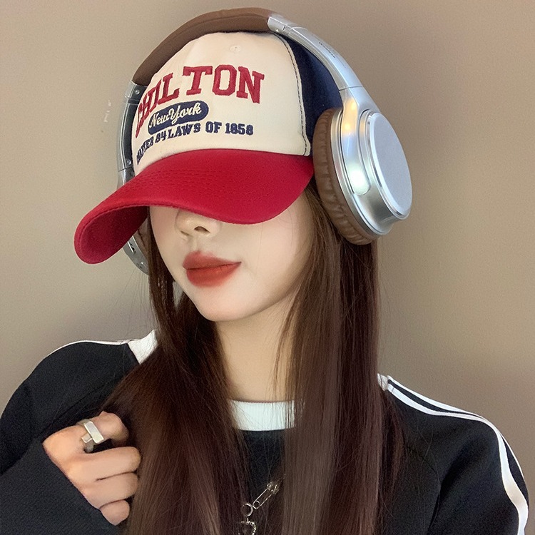 美式复古撞色软顶棒球帽女春夏大头围显脸小鸭舌帽加大宽帽子男款