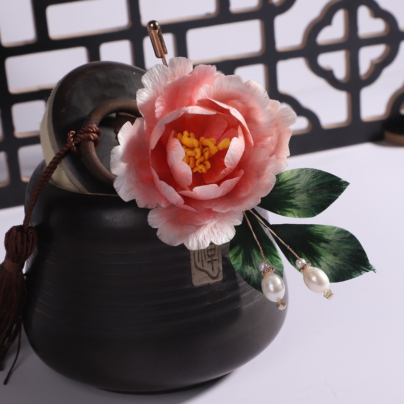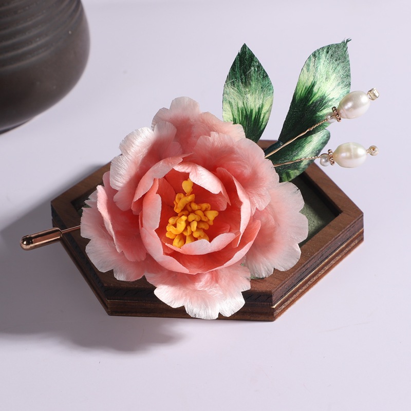 【材质】:蚕丝绒花,淡水珍珠,米珠,铜线,合金铜配件